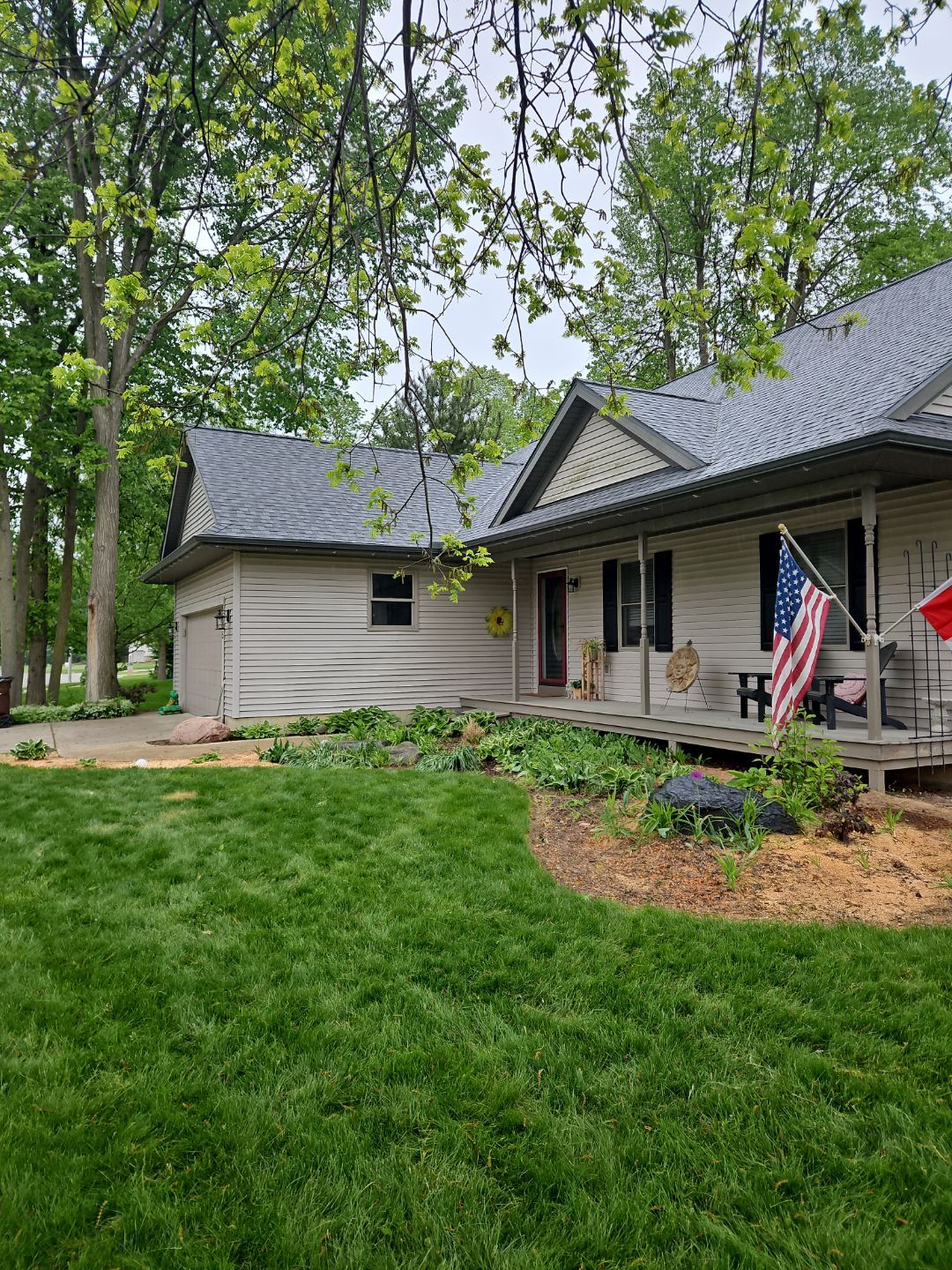 This home has a sharp, new roof thanks to CertainTeed Landmark shingles in Pewter, and Michigan Aluminum gutters and downspouts in the color Tuxedo Gray!