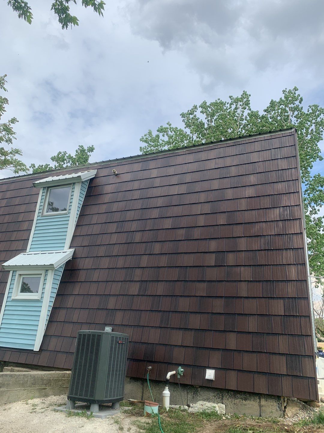 Monty’s home in Decatur, Indiana has a distinctive gambrel roofline that immediately sets it apart. It originally carried cedar shakes, and while they had character, they were well past their prime. The roof was showing its age, and patching it again did not make sense. What mattered most to Monty was preserving the home’s history. He could not picture replacing those original cedar shakes with something that stripped away the architectural feel. The roof needed to honor the design, not fight it. He chose the EDCO Arrowline SHAKE HD metal shingle system to maintain that dimensional shake appearance while upgrading to a steel-based roofing system built for long-term durability. The profile complements the gambrel lines and keeps the home’s character intact in Adams County. Now that the roof reflects the look he always wanted to preserve, the next step is siding that better matches the strength and presence of the new roof. For Monty, this was not just a replacement. It was a restoration decision done with intention.