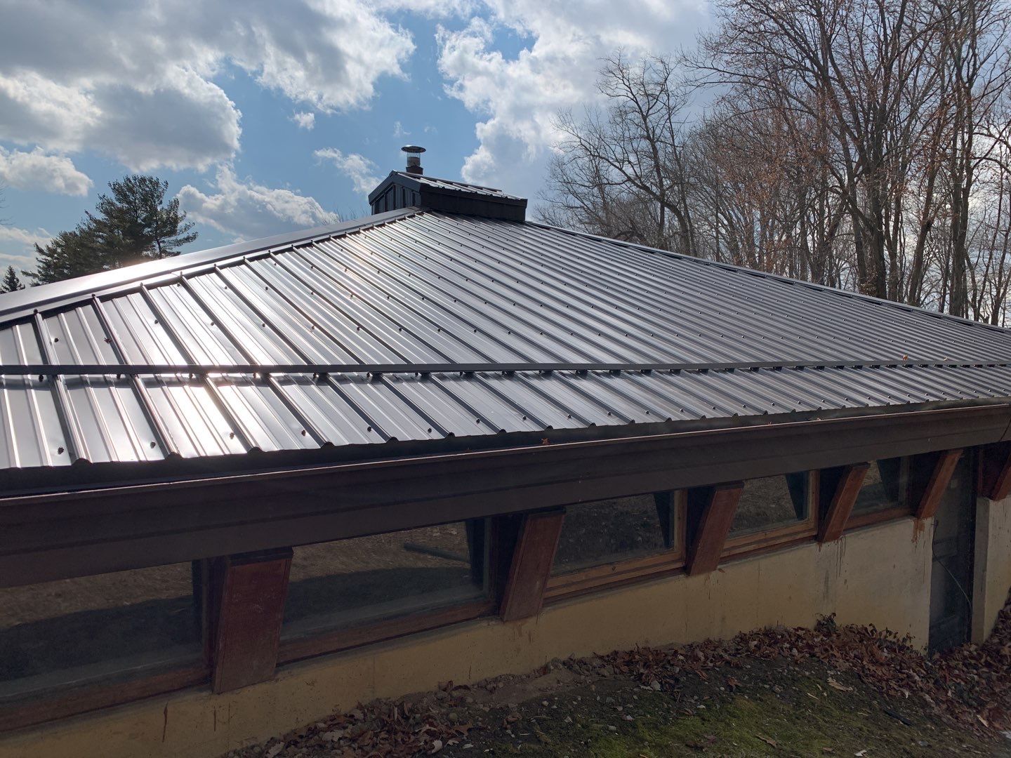 This Columbia City, Indiana property includes multiple homes on a single parcel, with the most distinctive structure being a bunker-style residence set back from the road. The owner wanted a roofing system that fit the strong, utilitarian architecture of the buildings while providing reliable protection in Whitley County’s wind and seasonal weather patterns. He selected an exposed fastener metal panel system for its straightforward structural design and durability. Given the property’s open exposure and the angular design of the bunker-like structure, panel layout and fastening precision were critical. Proper screw placement, trim integration, and flashing details help support long-term performance in wind-driven rain and snow conditions common in Northeast Indiana. The finished result complements the bold, reinforced appearance of the primary structure while maintaining visual consistency across the additional homes on the property. A practical metal solution that matches the character of a uniquely designed Columbia City residence.