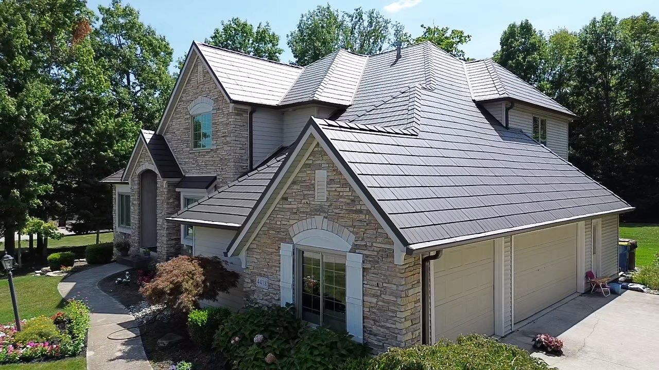 This gated HOA community in Fort Wayne, Indiana experienced significant hail damage, requiring roof replacement for this home. Rather than reinstall traditional asphalt shingles, the homeowner chose to upgrade to a metal shake roofing system while insurance covered the base replacement value. Because modern metal shingle systems closely replicate the dimensional look of architectural shingles, the HOA approved the installation after reviewing specifications and visual samples. Today’s metal shake roofing profiles provide the appearance required in gated communities while delivering improved impact resistance and extended lifespan. By applying the insurance settlement toward a higher-performance system, the homeowner was able to install a durable metal shake roof for only the cost difference above standard asphalt shingles. Metal shingle roofing continues to gain acceptance in Fort Wayne and Allen County HOA neighborhoods as homeowners seek longer-lasting solutions following storm damage.