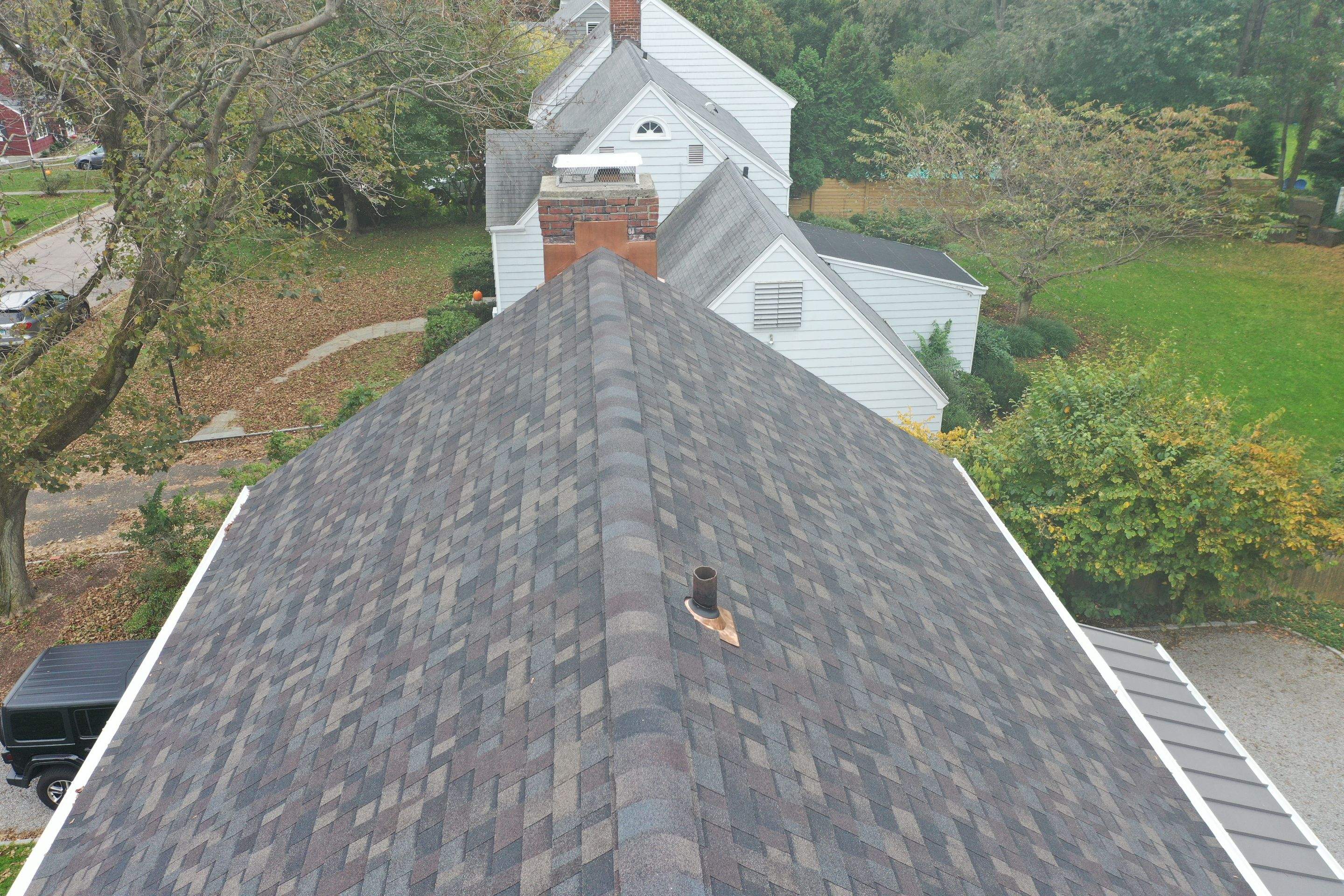 Standing seam, Residential Roofing Installation, White Halfround, Owens Corning Duration Designer - Black Sable