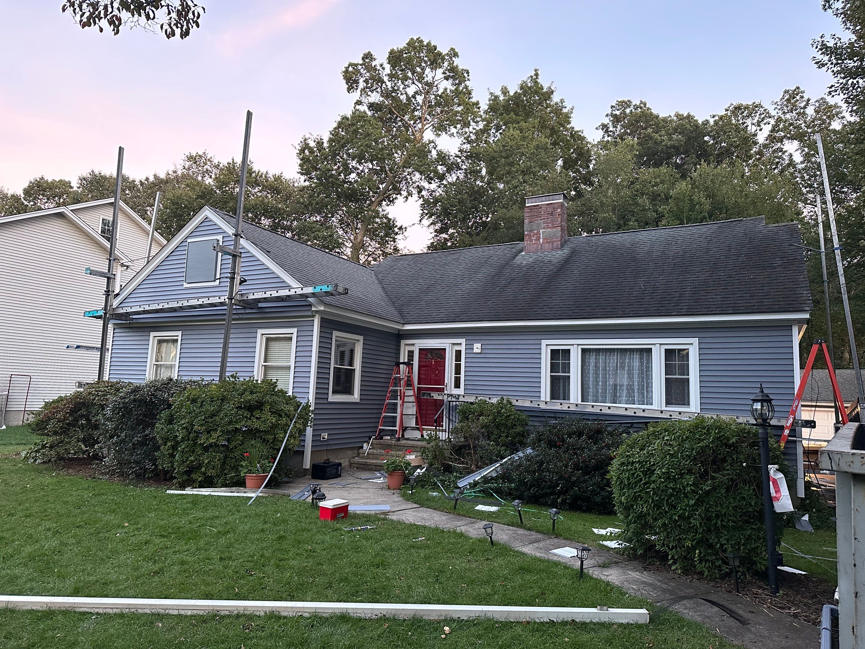 I apologize for the oversight. Let me craft a general description that sets the tone for the entire showcase of photos: Introducing Our Latest Masterpiece in Siding Installation As you browse through this photo showcase, immerse yourself in the artistry and precision we dedicated to this project. Utilizing Certainteed Monogram's exquisite Pacific Blue, the siding transforms the house into a beacon of modern elegance. Each image captures the rich hues, reminiscent of the deep Pacific waters, and the unparalleled craftsmanship that we pride ourselves on. From wide-angle perspectives to the intricate detailing, witness a home reborn through our expertise in siding installation. Enjoy the visual journey of transformation and elegance.