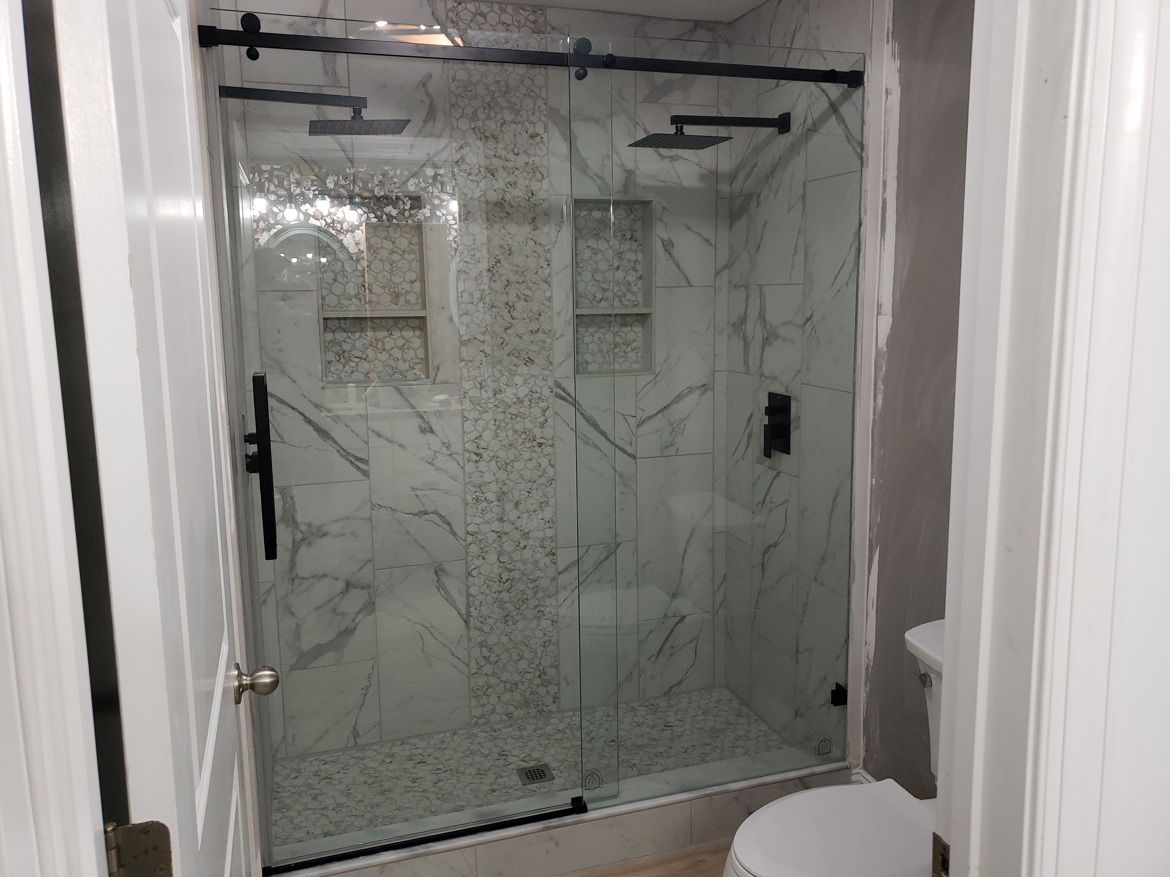 We recently completed a major upgrade on a customer's Jack and Jill bathroom, transforming the old space into a luxurious, modern retreat! The goal was size and style! We: * Removed the old fiberglass tub and shower unit. * Enlarged the shower space significantly. * Installed a beautiful custom tile poured pan. * Finished with stunning tiled walls and two luxurious rainfall shower heads! This renovated shower is now the centerpiece of the shared bathroom! #BathroomUpgrade #JackAndJill #CustomTile #ShowerRemodel #RainfallShower #AStepAboveHandy