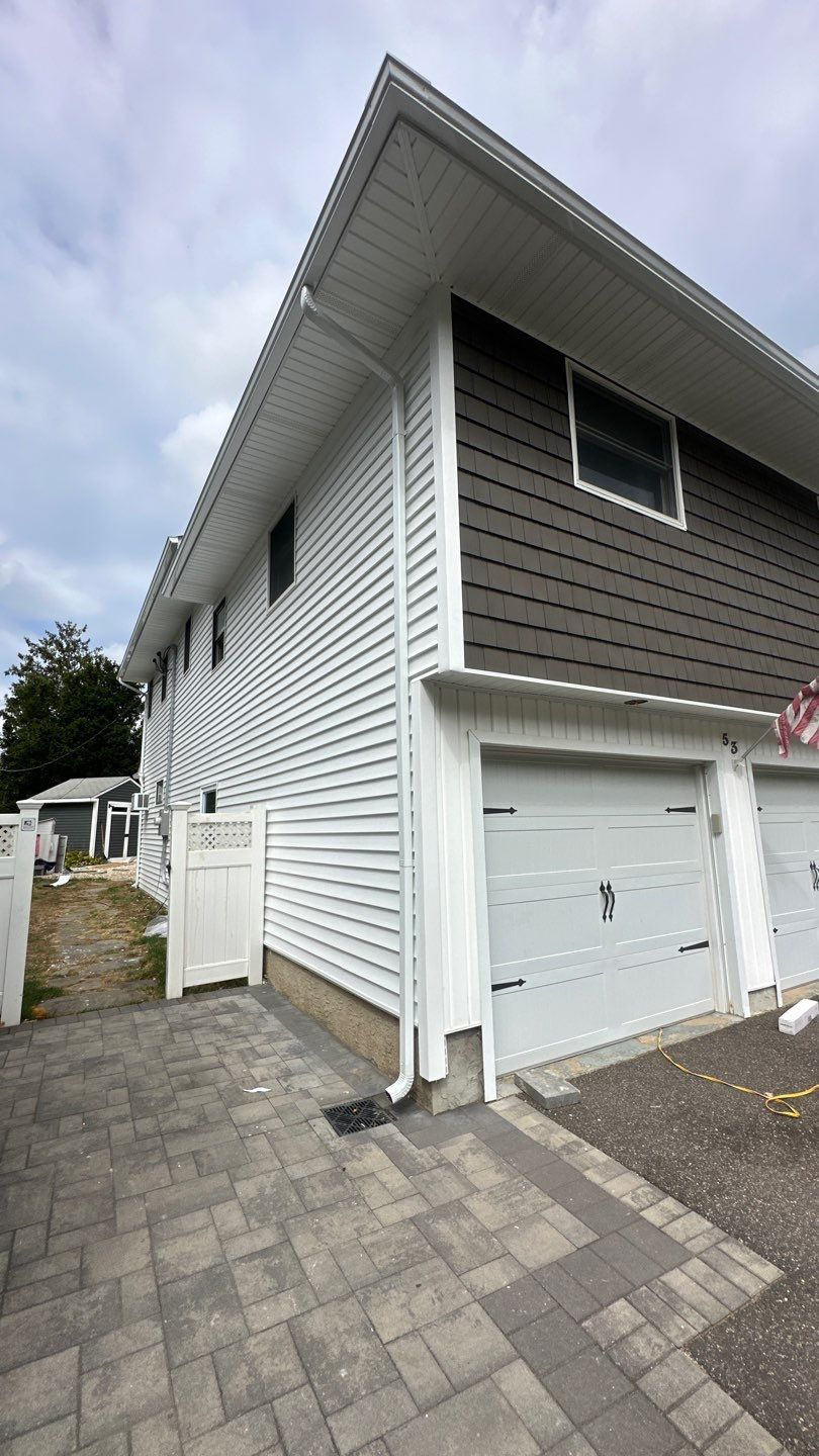 - Full House Installation 5" white seamless gutters 2x3 leaders