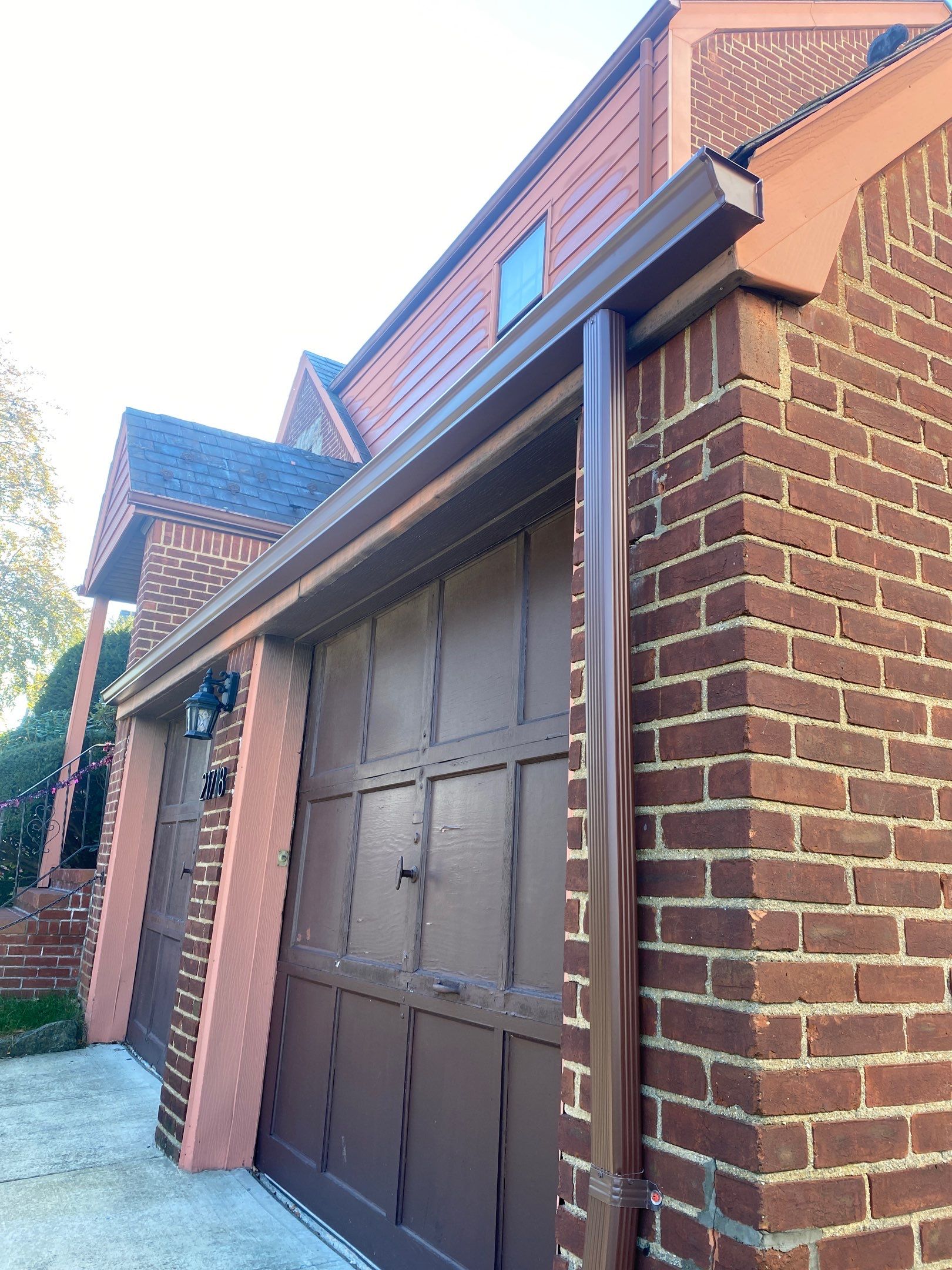 5"brown K style seamless gutters and 2x3 brown leaders, Gutter Installation
