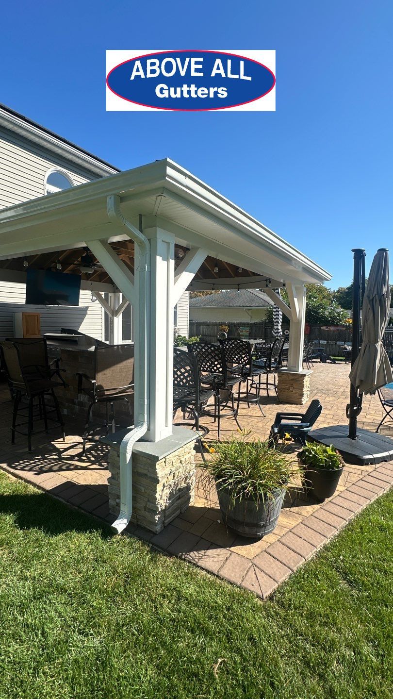 This is a new gutter installation on a beautiful new construction pavilion in Commack. I am proud of the work that my team did on this project.