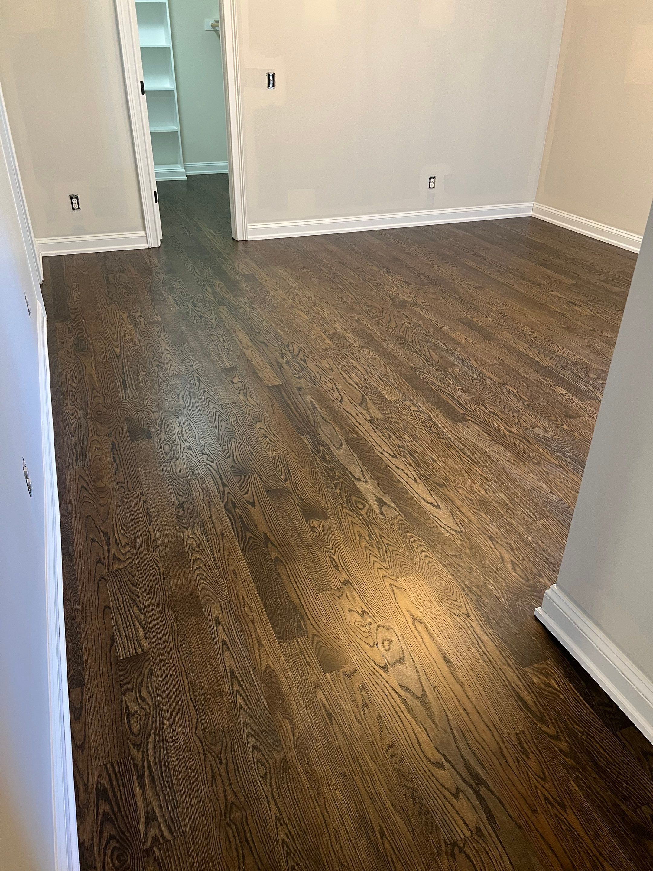 This newly purchased home needed some flooring help. As soon as the client closed on the home, we were there to begin installing new hardwood floors to closely match the existing floors. We installed, sanded, and finished the floors as close to the existing floor color as possible. Ebony was the wining color.
