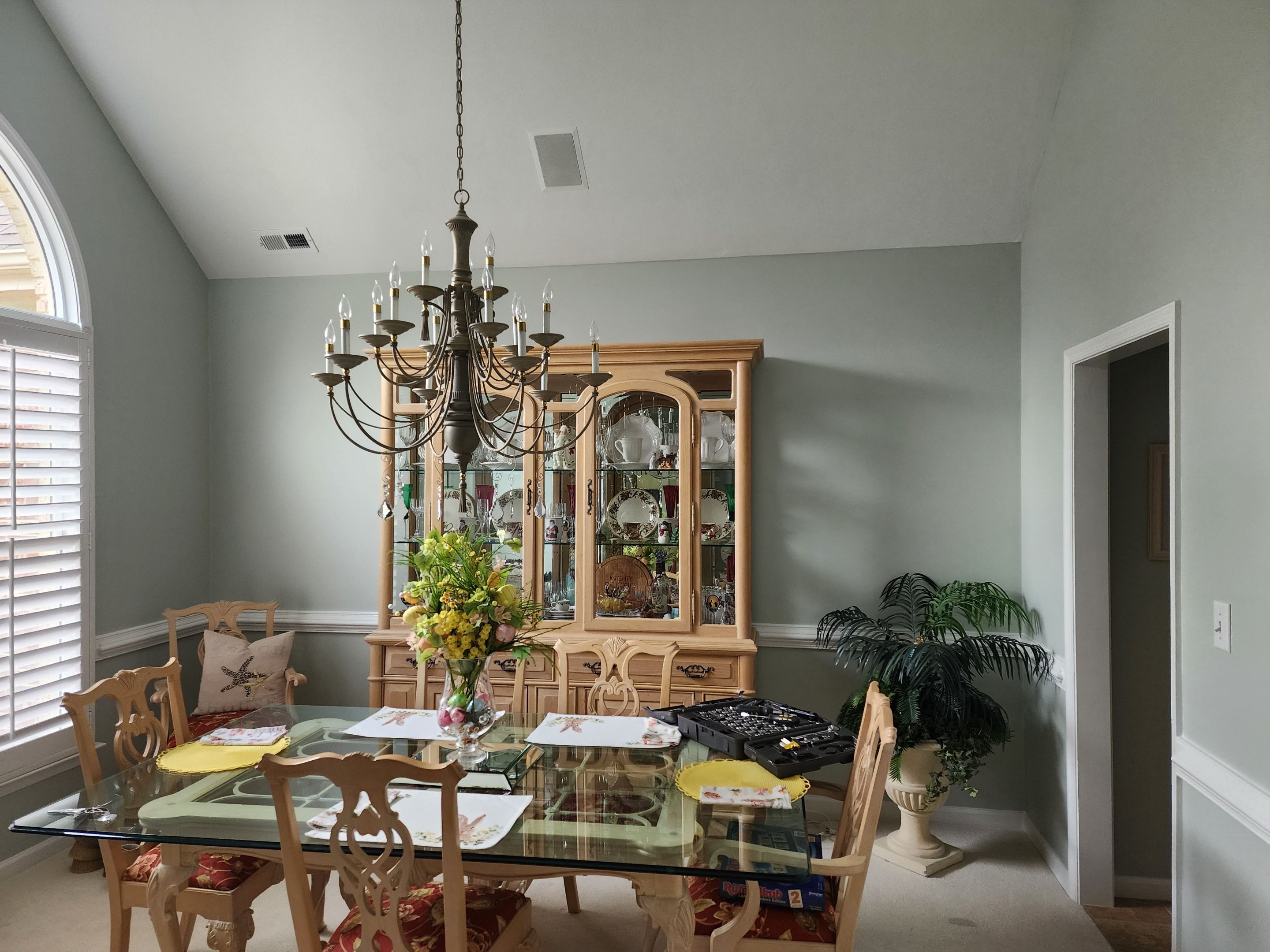 Made several drywall repairs. Re-caulked all trim that was painted. Painted all ceilings, walls, and trim in half of the house.