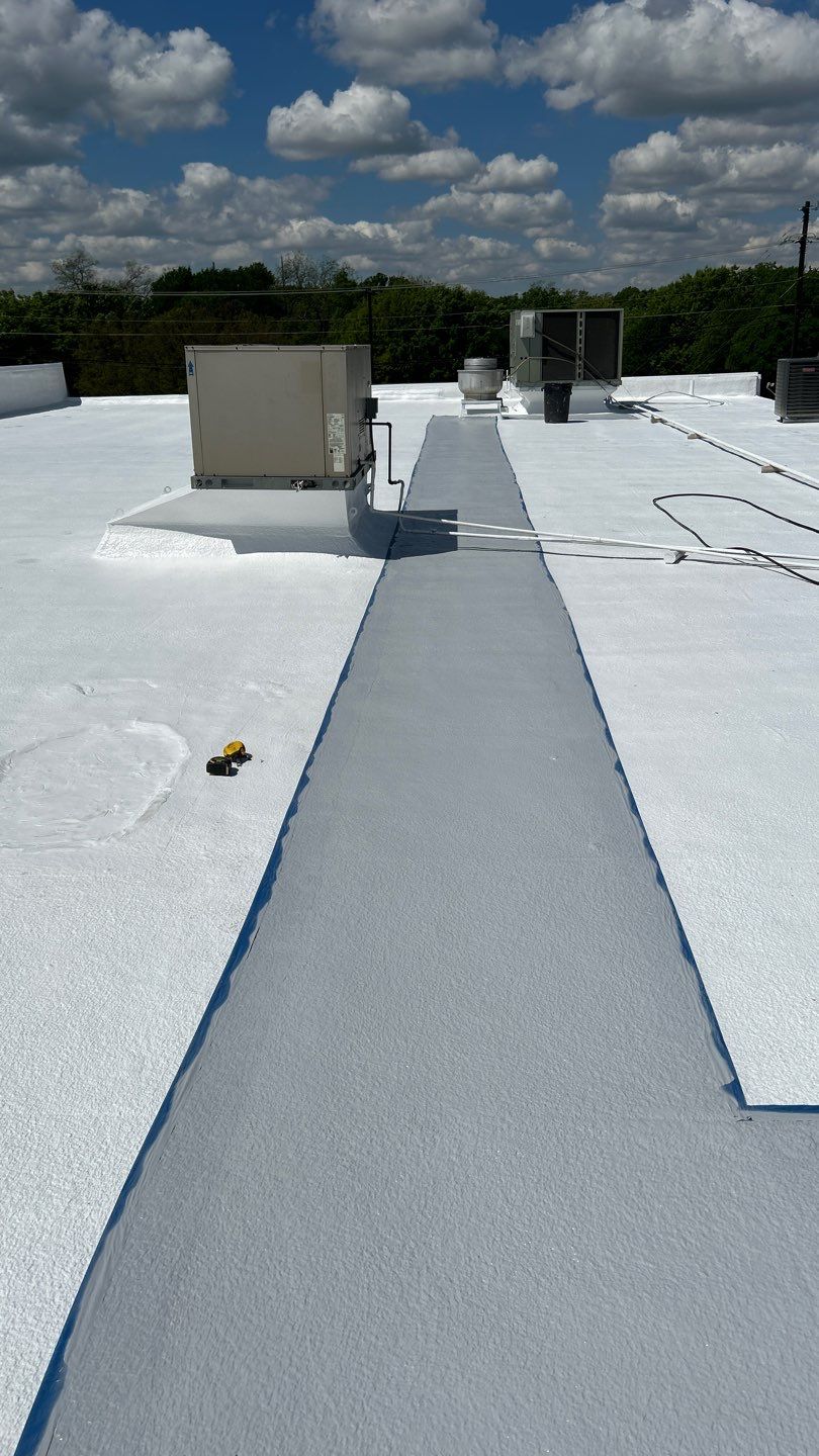 This project consisted of a commercial EPDM roof restoration for the Brauman Group facility in Garland, Texas. Due to the condition of the existing roof system, a full substrate upgrade was required prior to restoration. Our team installed new OSB decking across the entire roof surface, creating a solid, uniform base for the new roofing system. After the decking installation, a spray polyurethane foam (SPF) roofing system was applied, followed by a high-performance protective coating, resulting in a seamless, fully adhered roof assembly. This comprehensive foam and coating restoration system significantly improved waterproofing, increased thermal performance, and extended the service life of the roof without the need for a complete tear-off. The finished system delivers long-term durability, energy efficiency, and weather resistance, making it a highly effective solution for commercial EPDM roof restoration in Garland, TX.