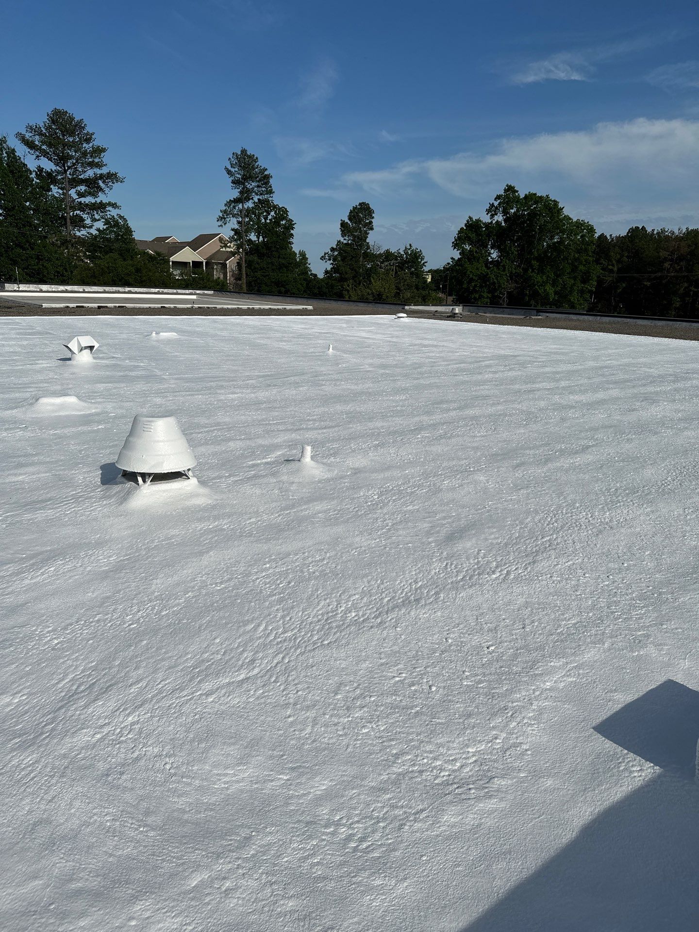 This project involved a sectional commercial roof repair and restoration for the Texas Department of Public Safety (DPS) facility in Tyler, Texas. The existing tar and gravel roofing system had areas of deterioration that required targeted repairs without disrupting daily operations. Our team completed a spray polyurethane foam (SPF) roof restoration, addressing compromised sections of the roof to improve waterproofing, insulation, and long-term performance. The repaired areas were reinforced with high-tensile acrylic roof coatings, creating a seamless, reflective, and durable protective layer designed to extend the service life of the existing roof system. This foam and coating restoration solution allowed DPS to avoid a full tear-off while restoring roof integrity, improving energy efficiency, and providing enhanced protection against Texas heat, UV exposure, and severe weather. The project demonstrates an effective, cost-efficient approach to commercial tar and gravel roof restoration in Tyler, TX for government and institutional facilities.