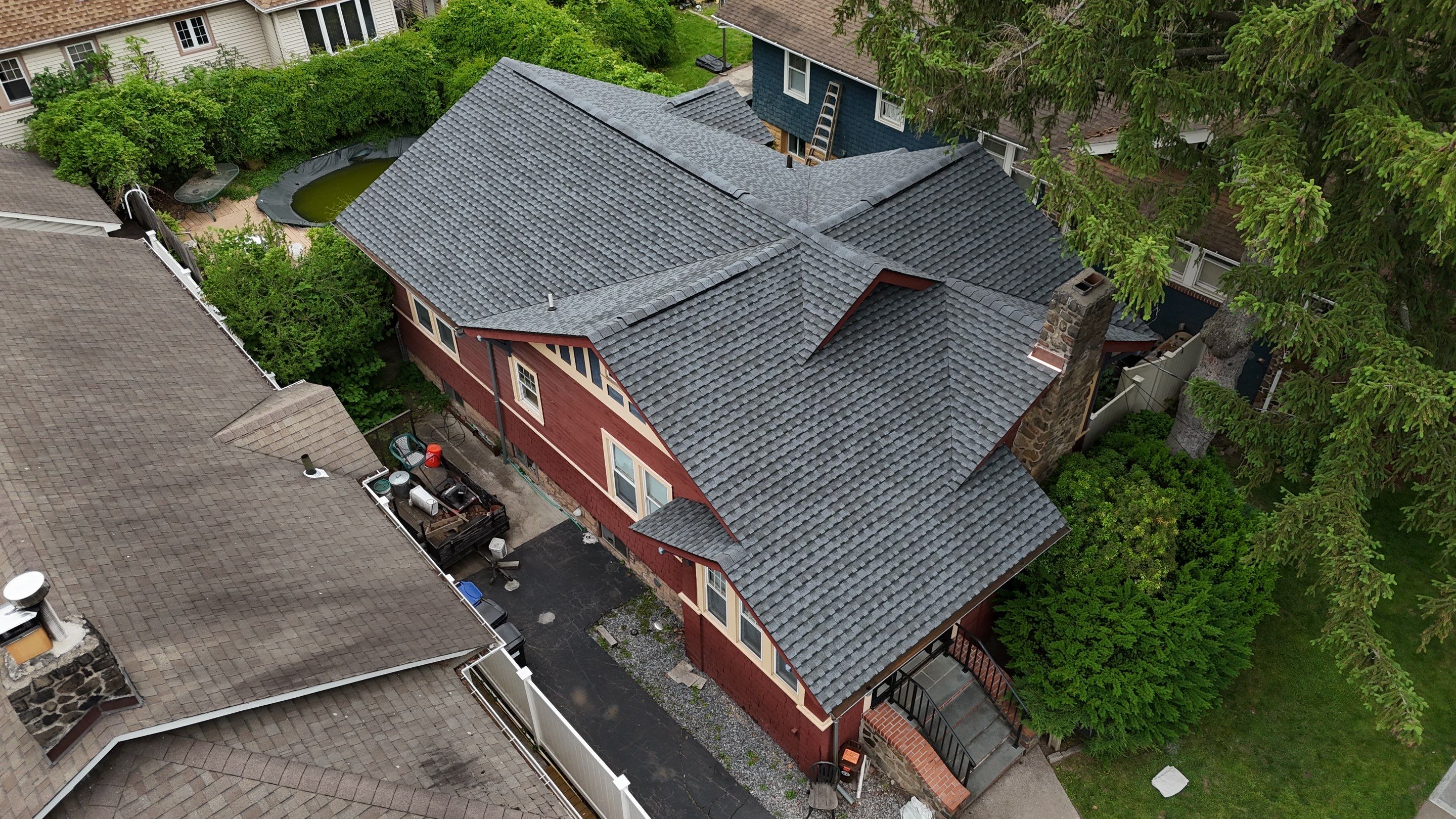 Roof completed in Staten Island, NY. Featuring GAF Timberline UHDZ in Pewter Gray. Installed custom copper chimney flashing