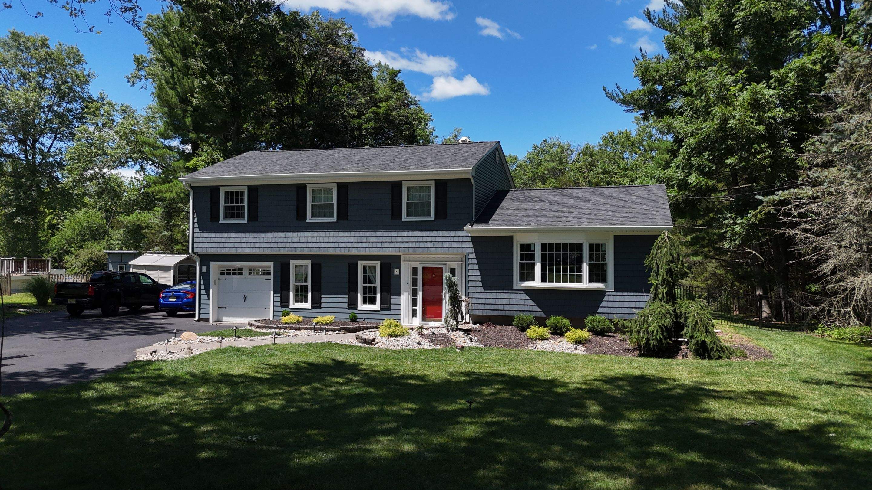 All State Home Improvement Inc.Roofing, Siding, and Gutters Project completed in Bridgewater, NJ📍 Featuring Owen's Corning TruDefinition Duration in Onyx Black Color, Royal Estate D4.5 in Midnight Surf & S7” Shake Shingle in Midnight Surf, and Wolfe Single 7” Wolf Portrait WG Denim. Installed 5" K Style Seamless Gutters and downspouts in white.