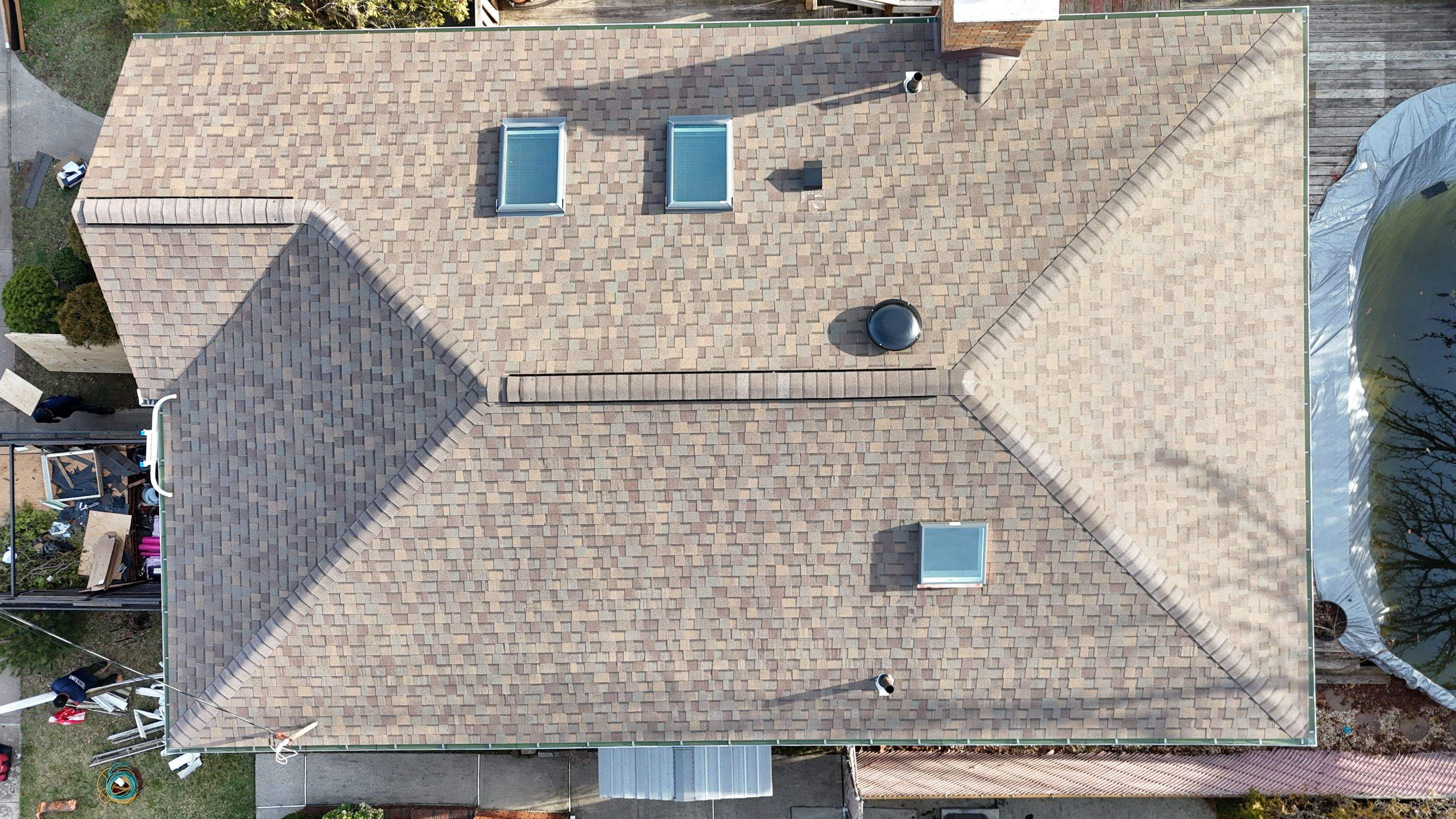 All State Home Improvement Inc.Roof replacement completed in Staten Island, NY. Featuring Owen's Corning TruDefinition Duration in Teak. Installed 3 new Velux Deck Mounted Skylights. New 5" K Style Seamless Gutter and downspout in white