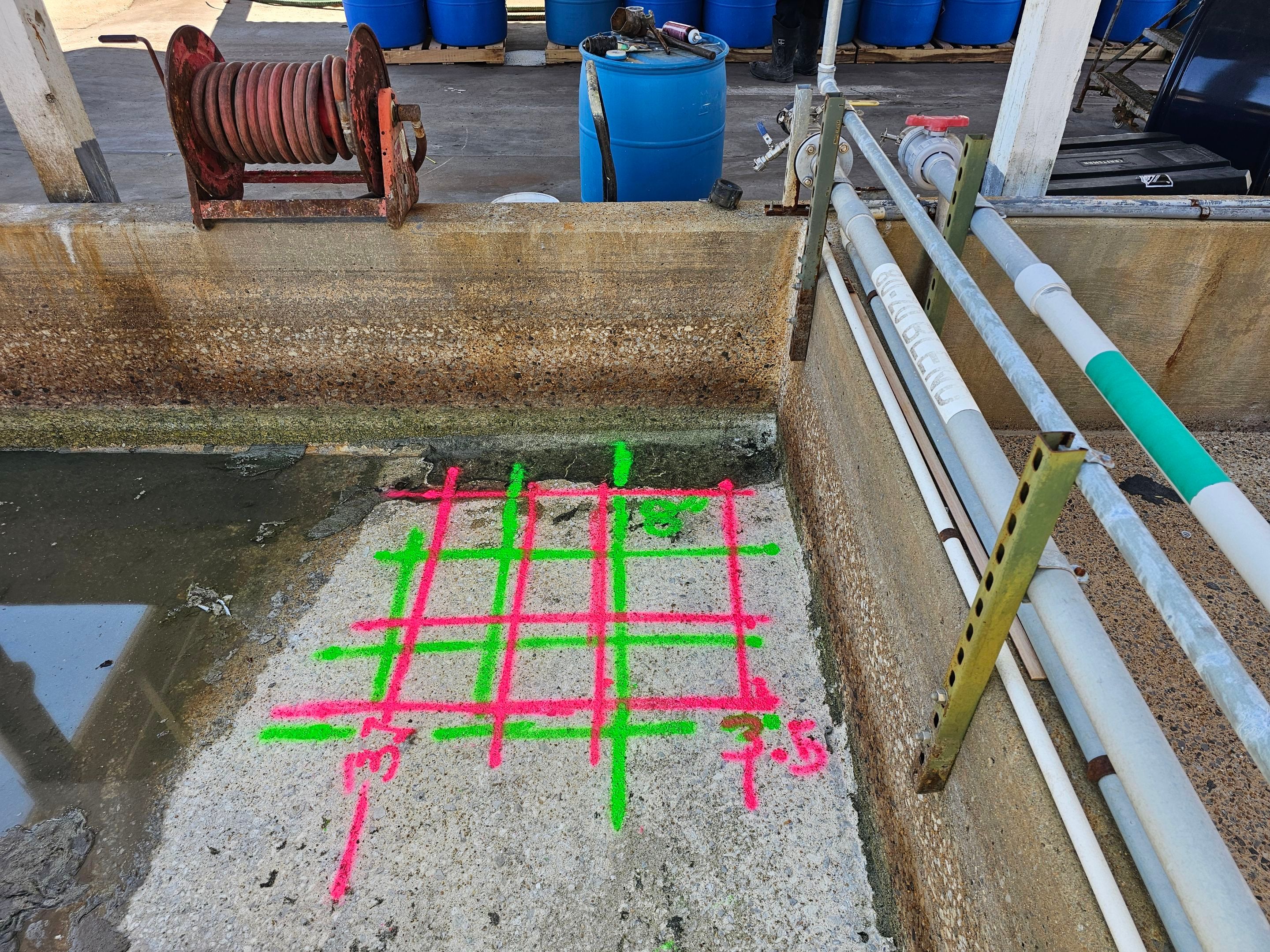 Using out C-Thru scanner we obtained information from a grid scan. Using slice data we were able to slice through this slab at 1in increments. Showing us 3 separate layers of reinforcement and a thickness of approximately 20in thick in some areas.