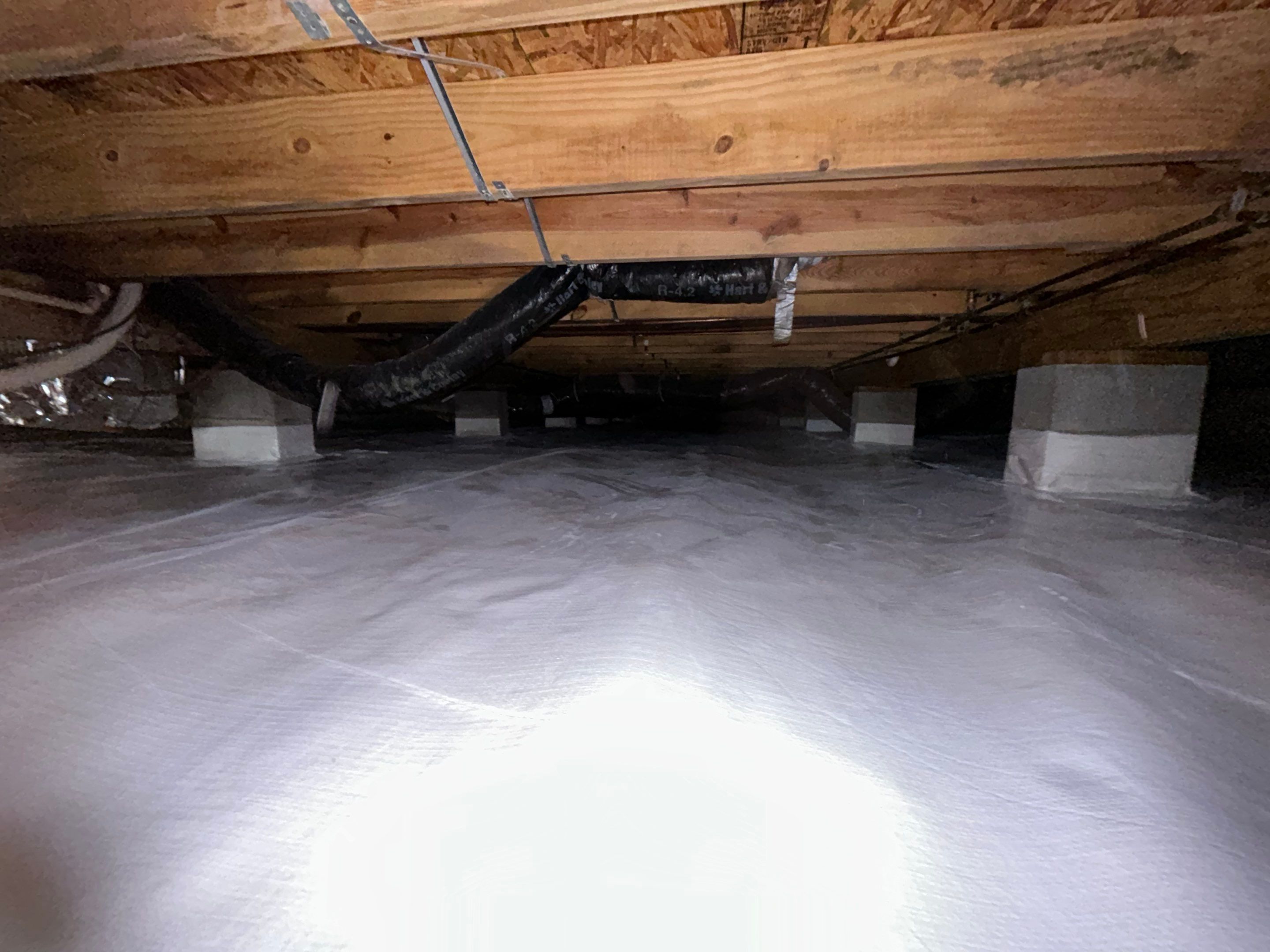 Crawlspace mold remediation and encapsulation in Austin, IN. After previous water damage in the crawlspace, our customer found mold growing throughout the area. We inspected the support beams throughout with moisture meters and then set up a plan for remediation. First, we took out the previous plastic installed in the crawlspace. Then, we applied antimicrobial solution to all the support beams and the affected areas in the crawlspace to treat them for mold damage. After that was completed, we laid down new vapor barrier in the crawlspace and installed a dehumidifier in the areas. Thank you for trusting ANR Restoration with you crawlspace mold remediation and encapsulation!