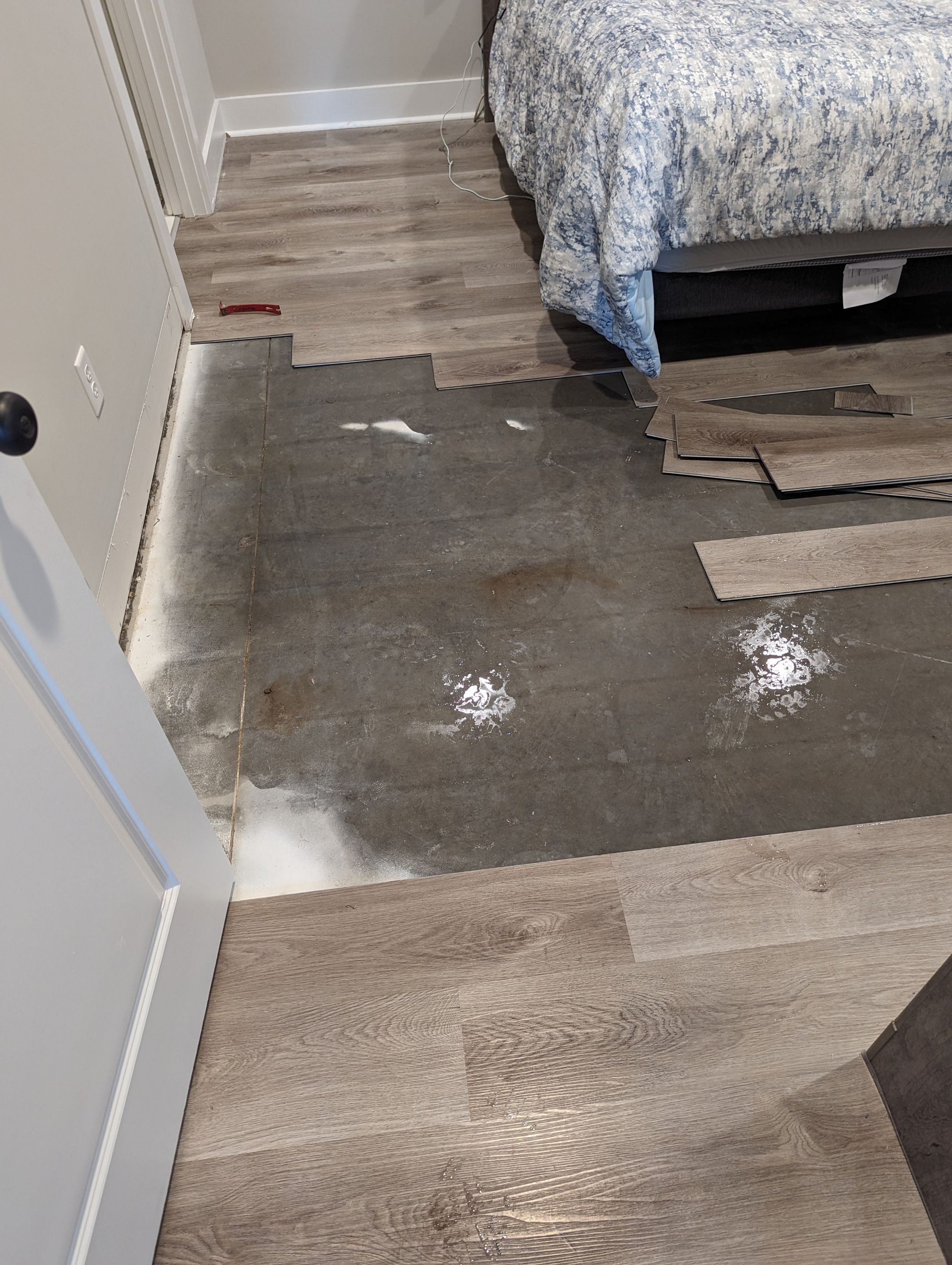 Emergency service water damage from a leak under the bathroom sink in a home in Jeffersonville, IN. We first assessed the damage by using moisture meters and thermal cameras to detect the extent of the damage. We found that the water damage spread from the sink, down through the hall, and into the bedroom. We then started to demo out the flooring to set our dehumidifiers and air movers to start our mitigation/dry-out process. More repairs to follow!