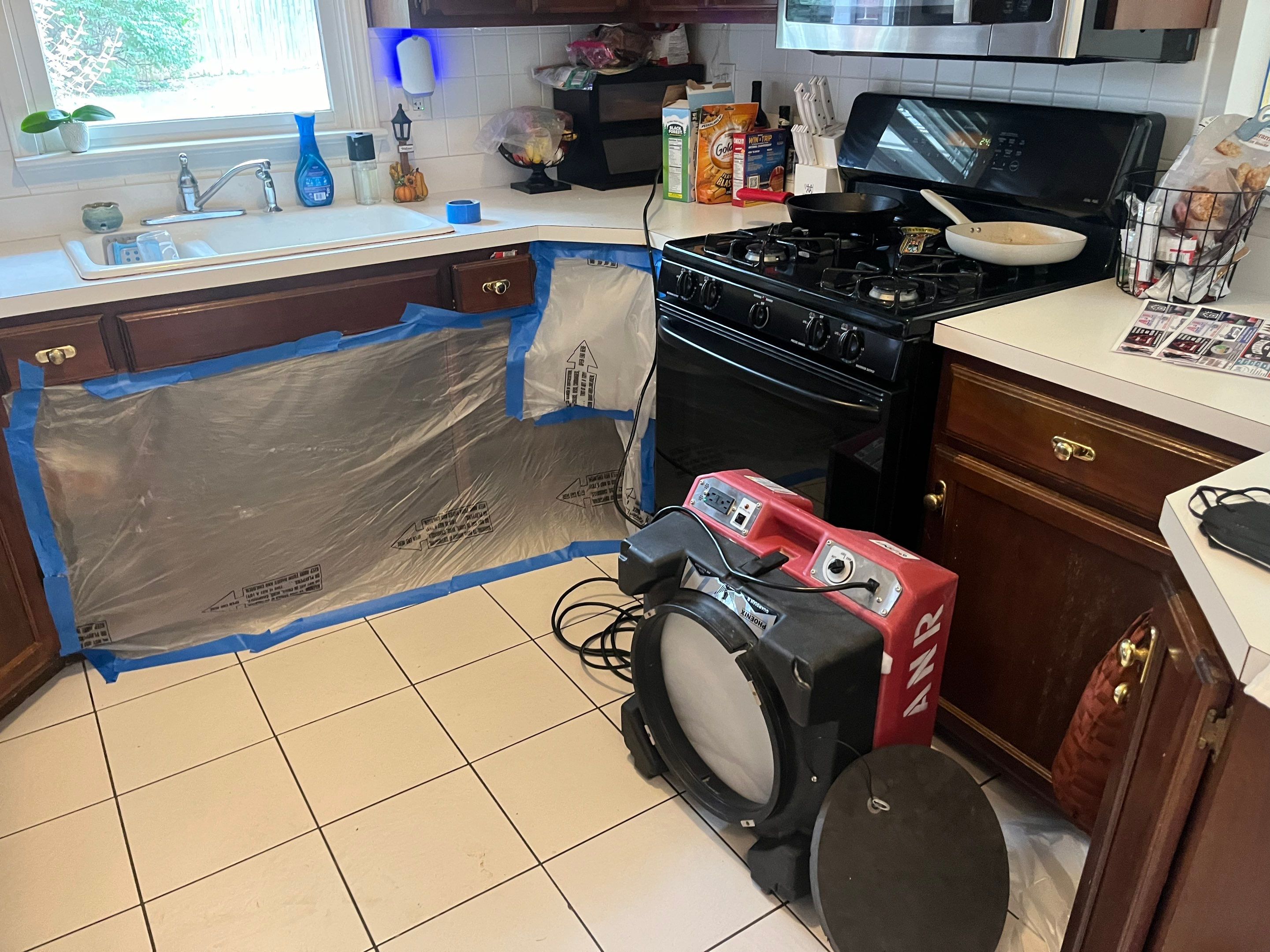 Mold remediation and repairs on a residential property in Sellersburg, IN. We first assessed the mold damage in the kitchen and moved forward quickly with remediation. Remediation started by setting up containments around the area and then proceeding to demo out the affected cabinetry/drywall. We then applied antimicrobial solutions to the areas and hepa vacuumed which finished the remediation portion. Repairs started by fixing the cabinetry in the kitchen areas as well as the flooring. Thank you for trusting ANR Restoration with your projects!