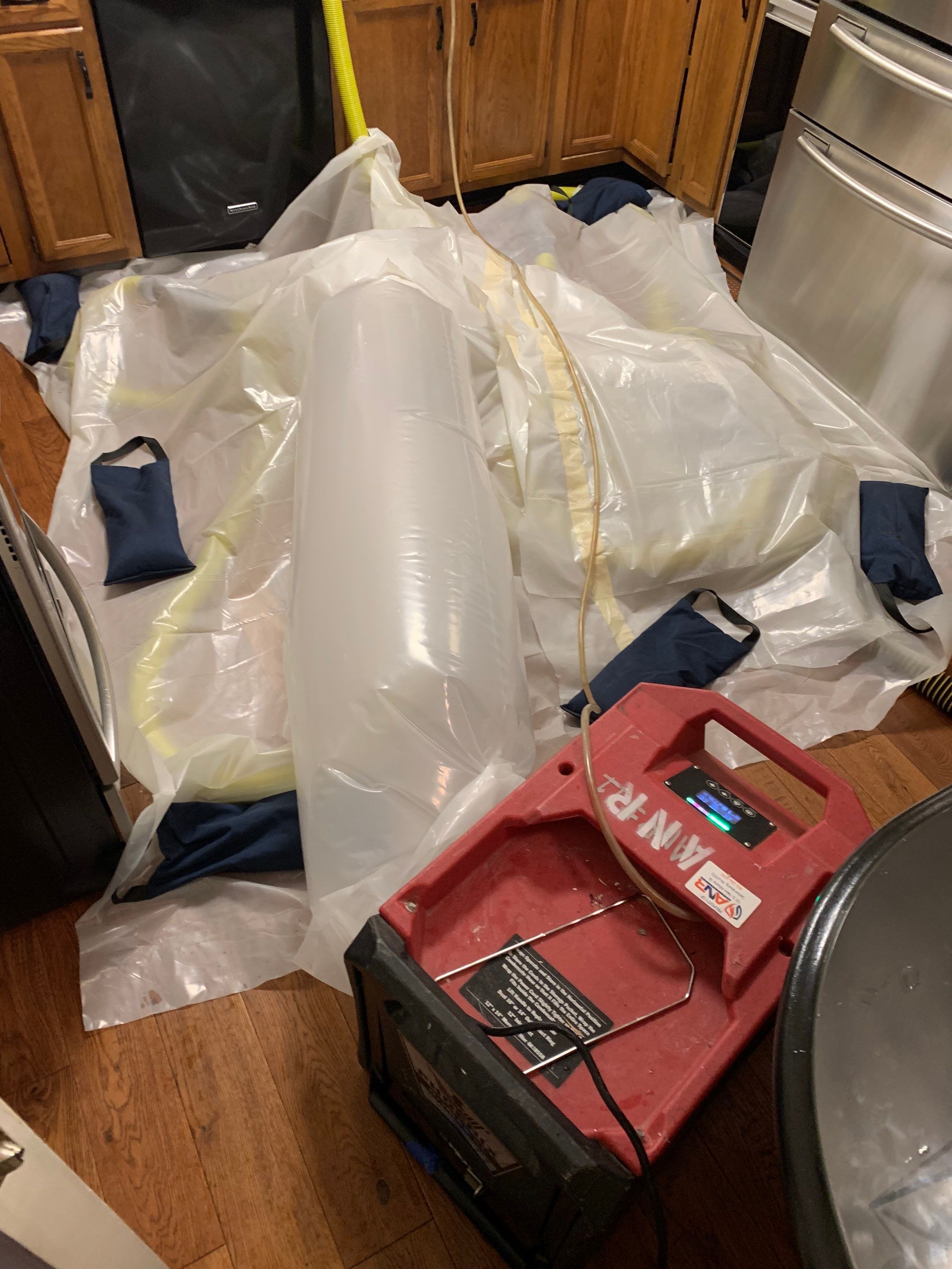 Water damage restoration in a residential home in Louisville, KY. A plumbing leak caused water to be trapped underneath the hardwood flooring in this kitchen, so ANR Restoration came to complete the water mitigation process. ANR set dehumidifiers, air movers and a system to dry underneath the flooring without having to demo out the flooring. ANR checked the process by measuring the buckled floors with moisture meters until it returned completely dry. With buckled hardwood floors, it can take up to 6 months for the wood to fully acclimate back to its original state. Thank you for trusting ANR Restoration with your remediation!