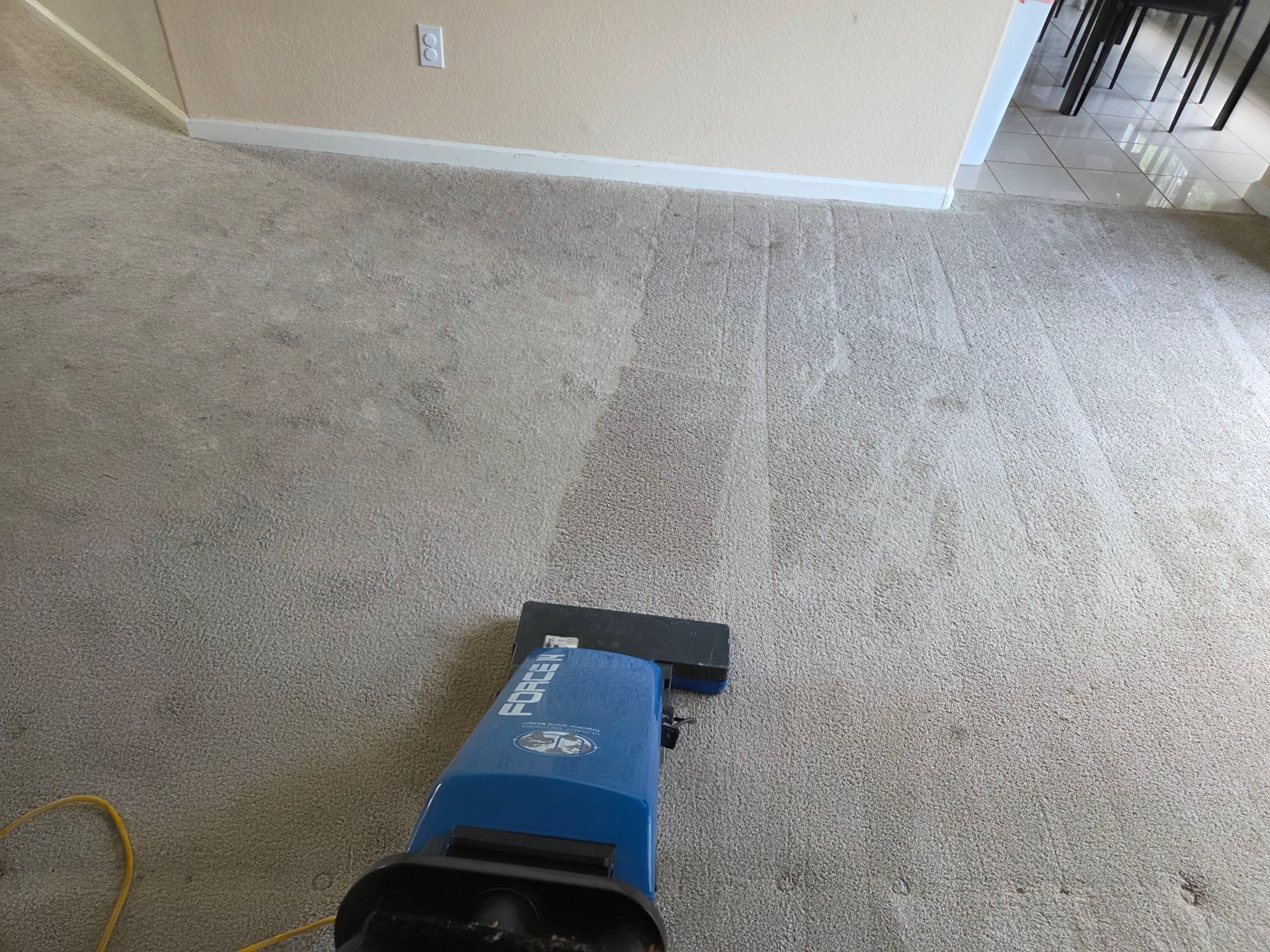 This carpet needed to be cleaned before the holidays. We gave it a thorough vacuuming and treated a few pet stains beforehand. We also had to do a fair number of spot treatments.
