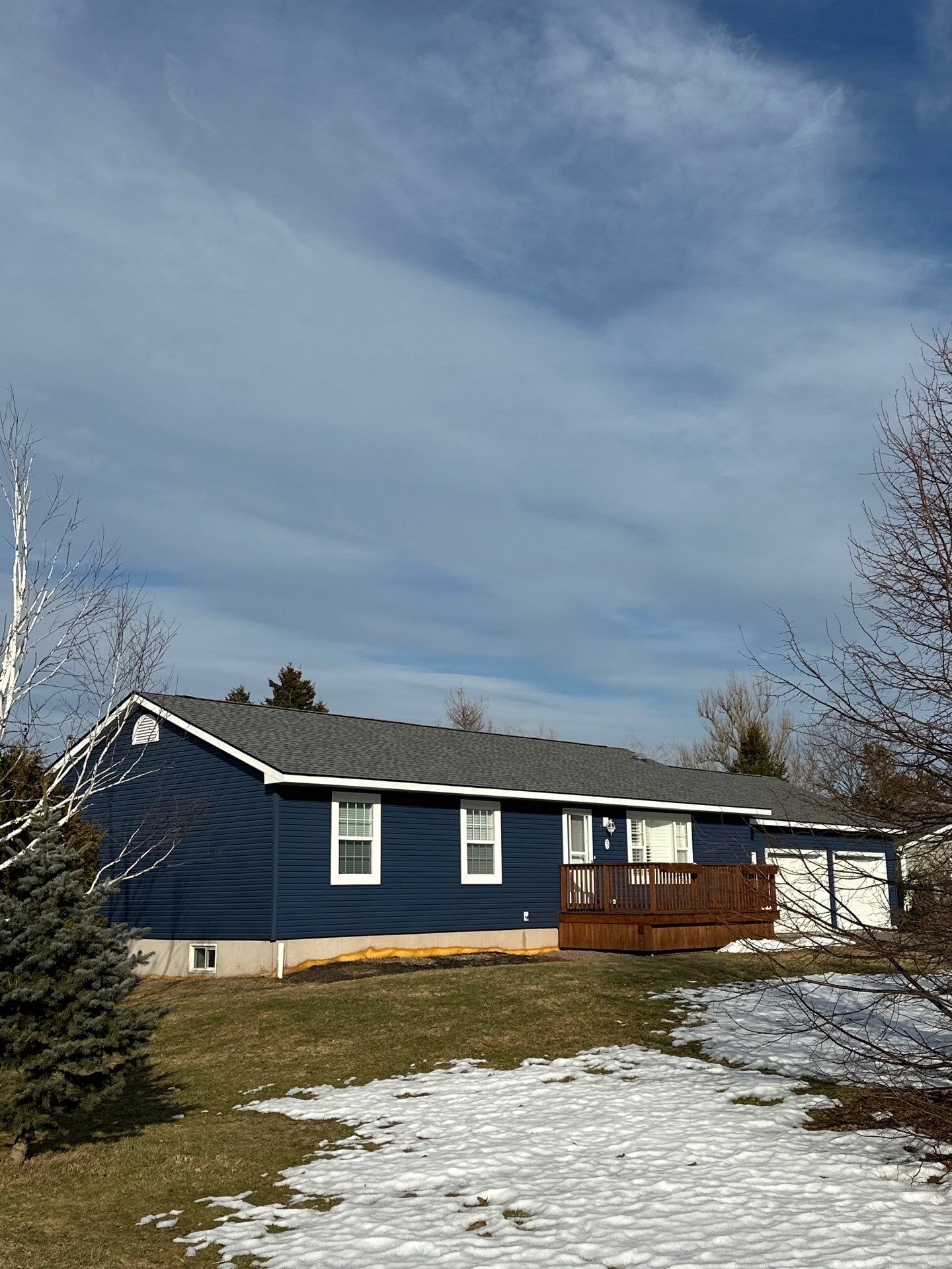 Residential Siding installation using Kaycan, Nordic Blue - from the Da Vinci Collection. Roof replacement using GAF Timberline HDZ - in Pewter Gray installed in 2023