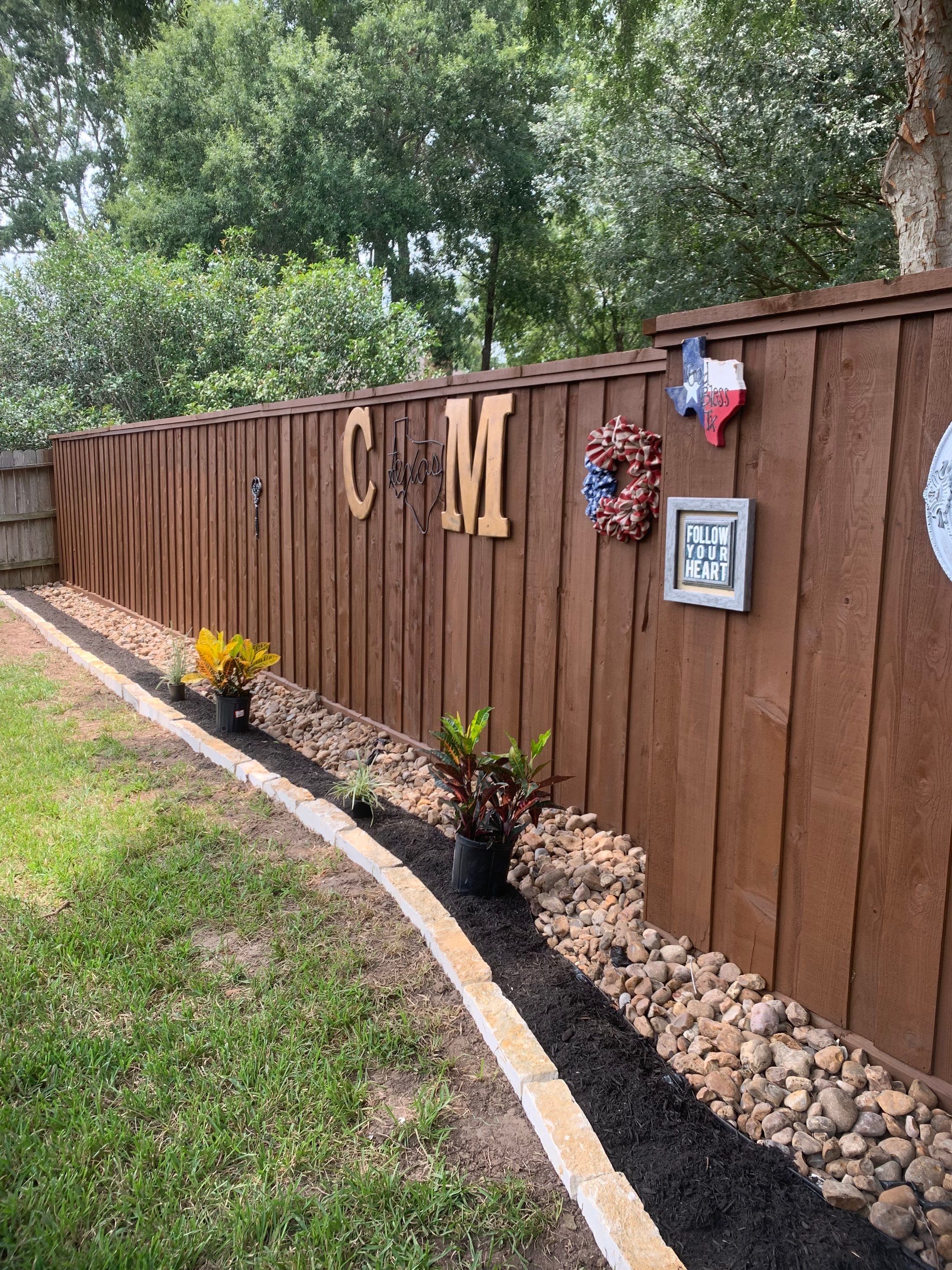something like "Cedar board-on-board privacy fence installation in Kingwood, TX. Full tear-out and replacement with cap and trim finish