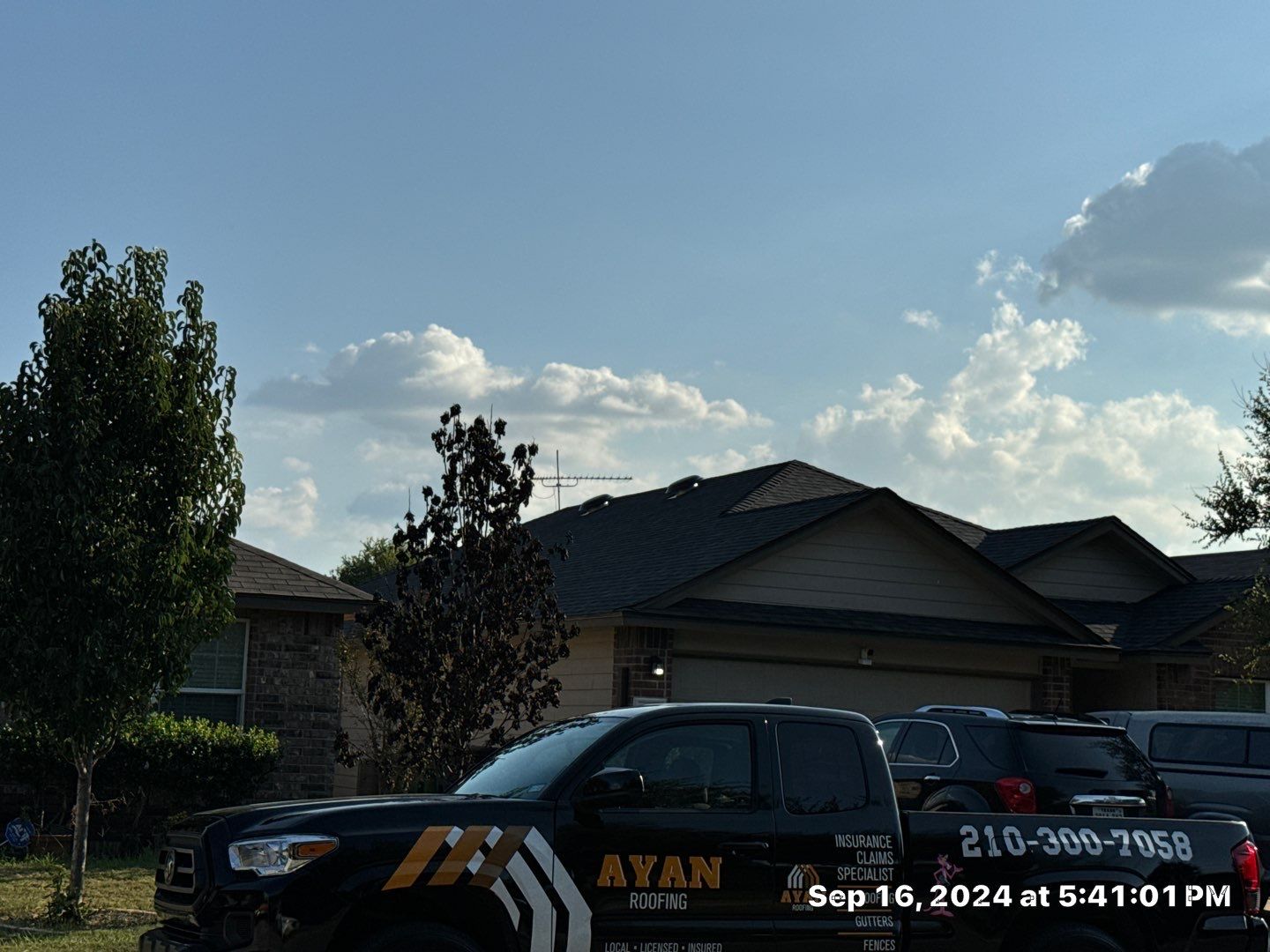 This project featured a full roof replacement using Owens Corning TruDefinition® Duration® shingles in Onyx Black. As part of the process, our team carefully removed the existing solar panels prior to installation and reinstalled them once the new roofing system was complete, ensuring proper alignment and performance. The finished result is a sleek, durable roof with a seamless solar setup, built to withstand Texas weather while preserving the home’s energy efficiency