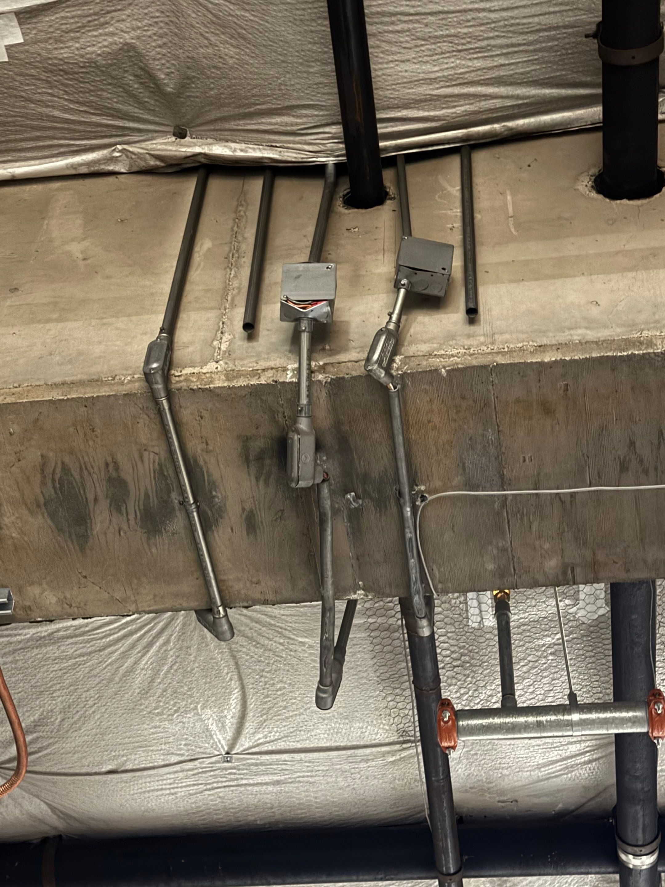 Emergency service call: Dumpster driver lifted the dumpster inside damaging several circuits and conduits for lighting, cash registers, and lobby area circuits. We replace all the conduits and boxes and replaced damaged wiring getting power back on for this business.