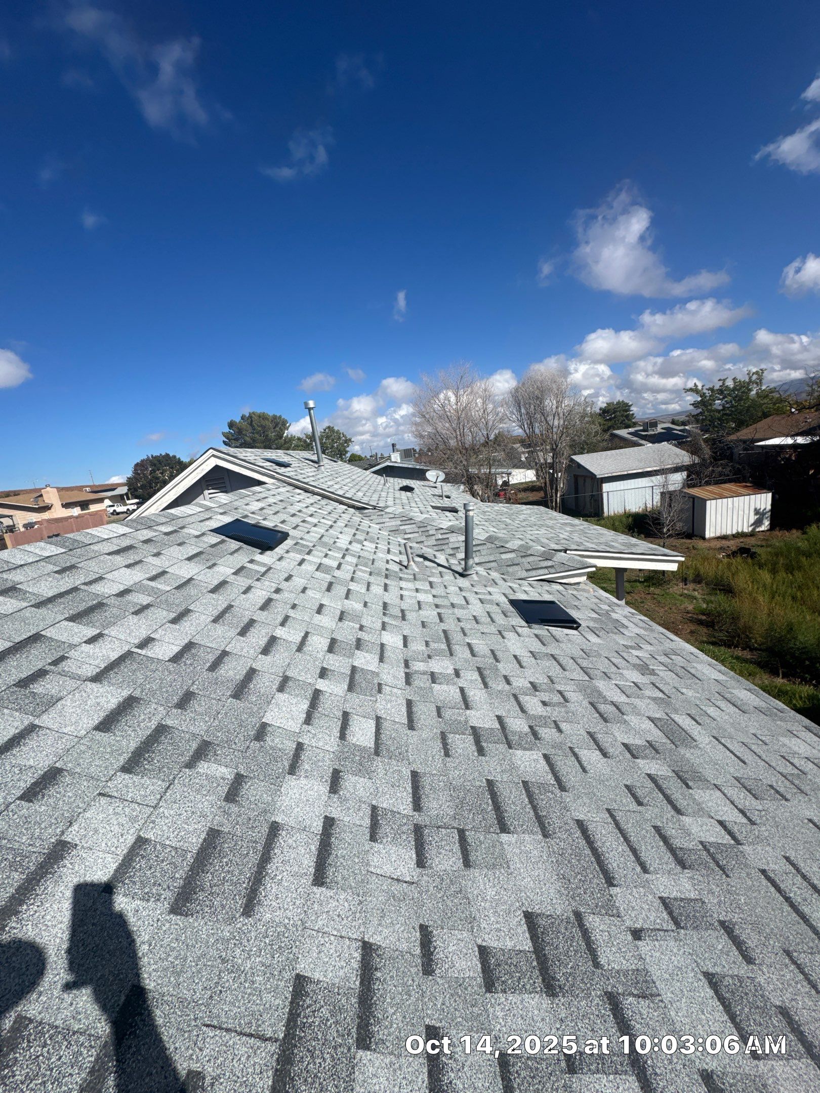 Roof Replacement — Prescott Valley, AZ (Malarkey Vista “Silverwood”) We just completed a full roof replacement on this home in Prescott Valley using Malarkey Vista Silverwood architectural shingles — not just a pretty face, but engineered to last. Why Vista Silverwood is a smart choice Built with NEX® polymer-modified rubberized asphalt, giving it superior granule adhesion, flexibility, and weather durability. Malarkey Roofing Products Carries a Class 4 impact-resistance rating — the highest available — so it’s tougher against hail, flying debris, and storms. Excellent all-weather performance: designed to handle Arizona heat, wind, monsoon rains, and UV exposure without giving up. The granules help reduce smog / clean the air (a bonus for eco-minded homeowners).