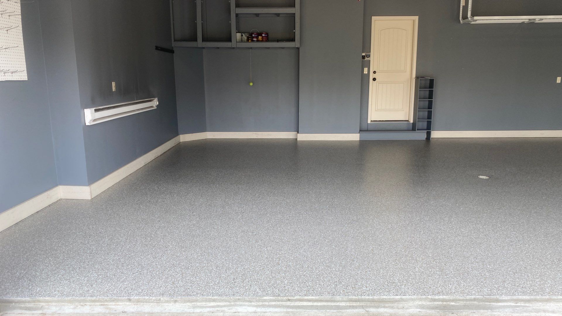 Racks: 4'x8' White Ceiling Rack, Banner Garage Floor, BG Floor: "Creekbed", Garage Addition, Garage Upgrade, Garage Remodel, Flooring Installation