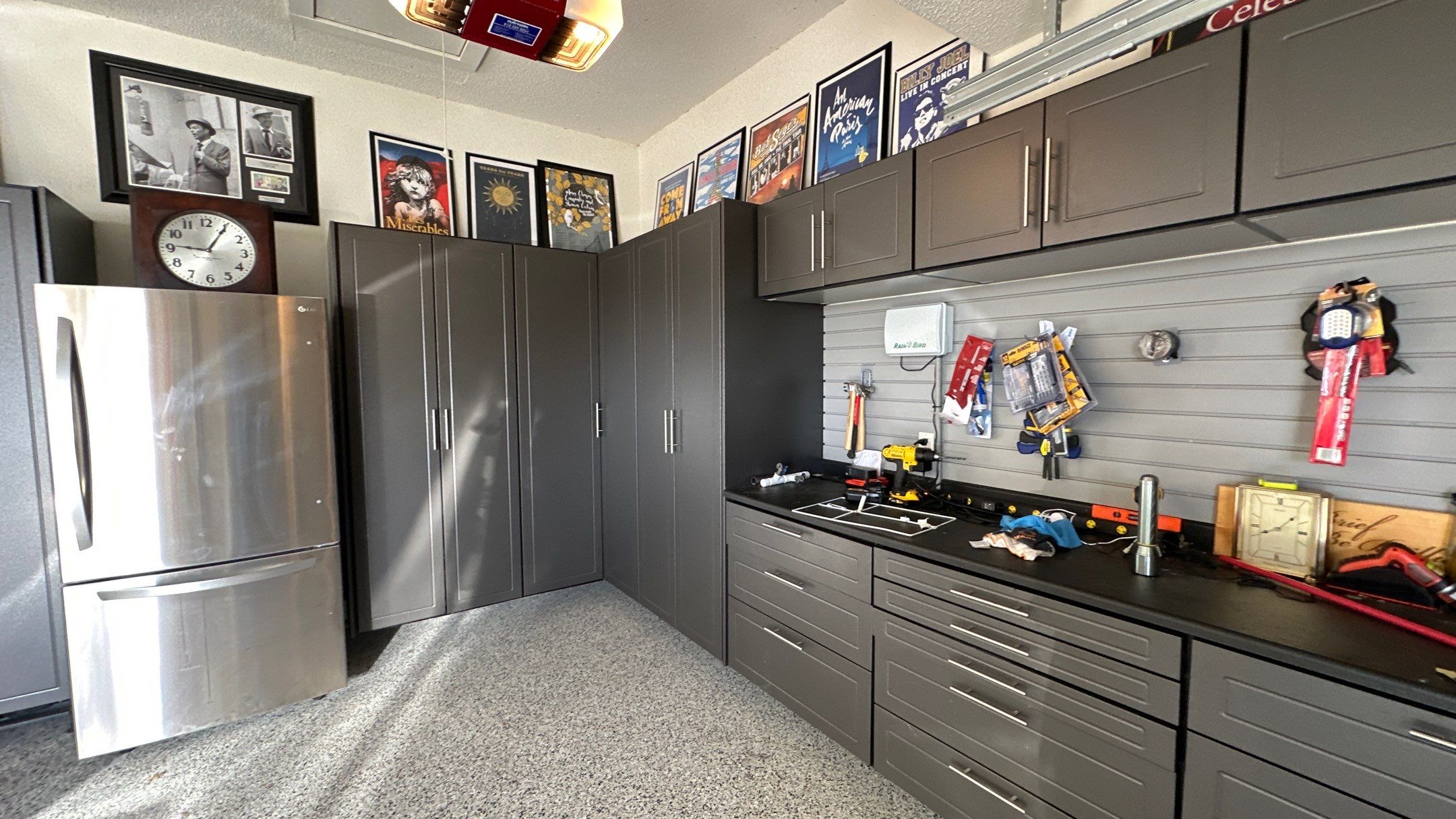 Redline GarageGear Cabinets, Heavy Duty Slotwall, RLGG Cabinets: "Pewter" Powder Coated, Specialty "Black" HD Workbench/Countertop, RLGG Door/Drawer Style: Reverse Bead (Shaker), Garage Upgrade, Garage Remodel