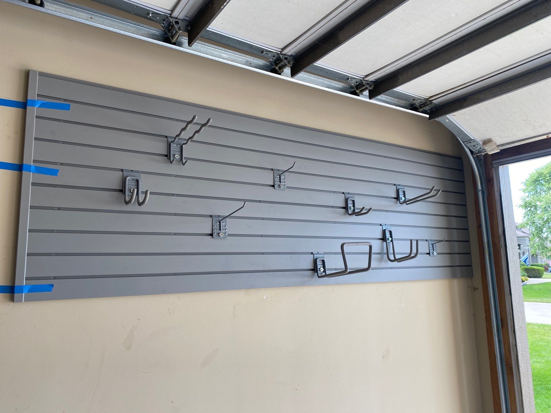 Heavy Duty Slotwall, SW HD Slatwall: "Weathered Grey", Racks: 4'x8' White Ceiling Rack, Garage Addition, Garage Upgrade, Garage Wall Storage