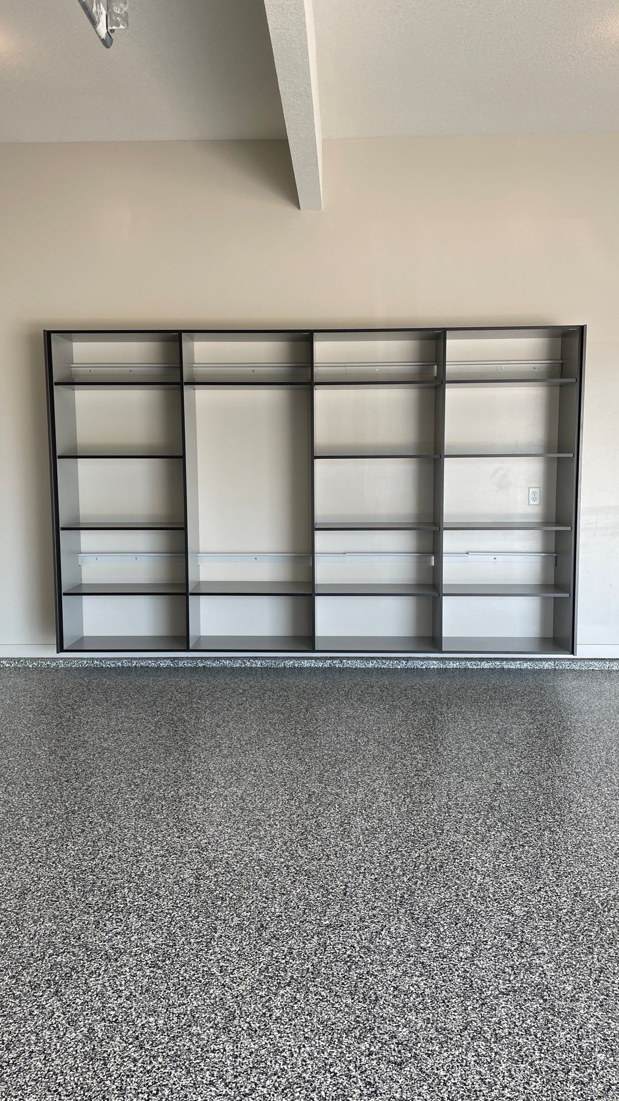 Redline GarageGear Cabinets, RLGG Cabinets: "Pewter" Powder Coated, Bike Storage: SteadyRacks, Banner Garage Floor, BG Floor: "Banner", Heavy Duty Slotwall, SW HD Slatwall: "Brite White", Flooring Installation, Cabinet Installation, Garage Addition, Garage Remodel, Garage Upgrade, Garage Wall Storage