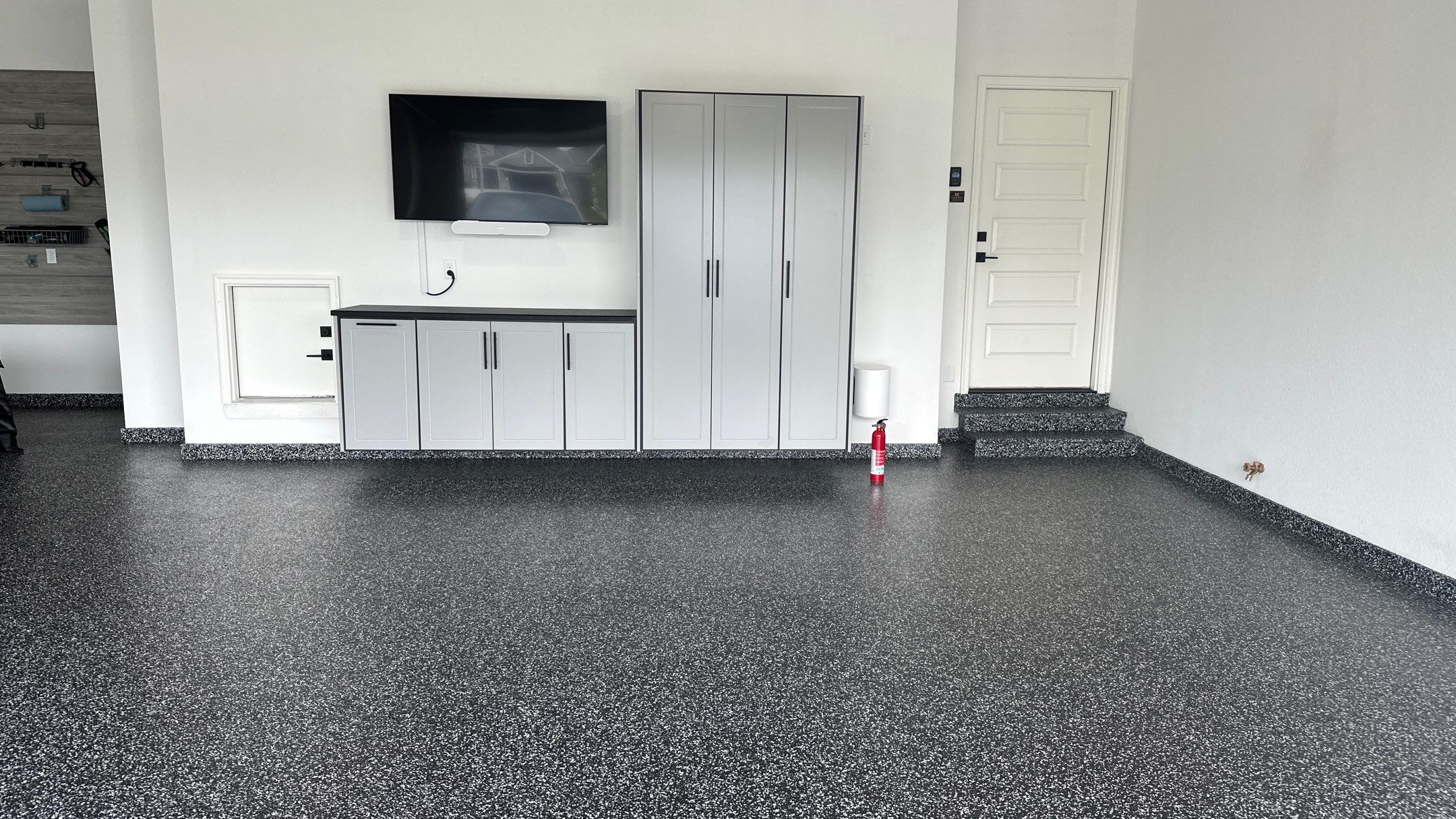John H. received his dream garage with cabinets and a Banner Garage Floor