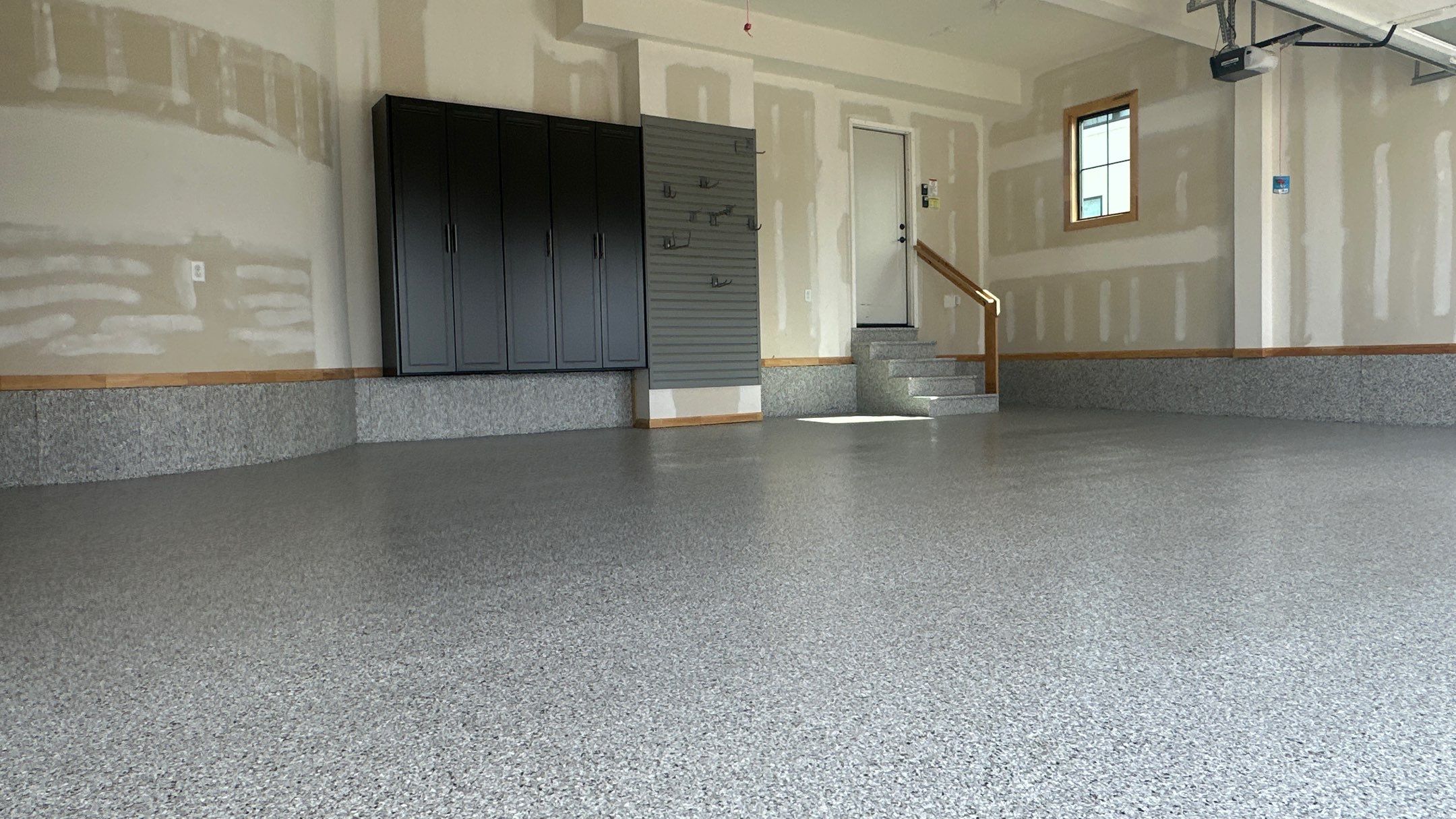 Megan J. added cabinets and slotwall to her garage. Plus a New Floor