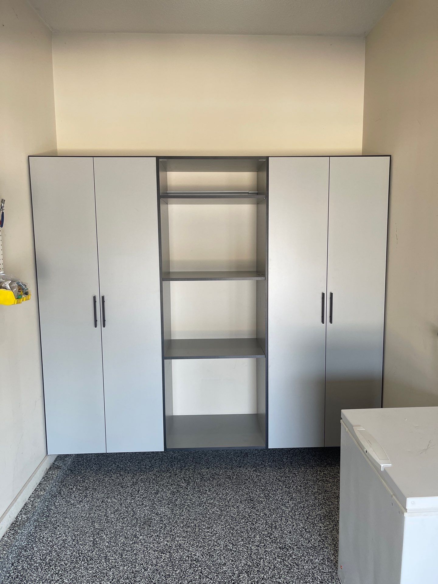 Redline GarageGear Cabinets, RLGG Cabinets: "Dove Grey" Powder Coated, Cabinet Installation, Garage Addition