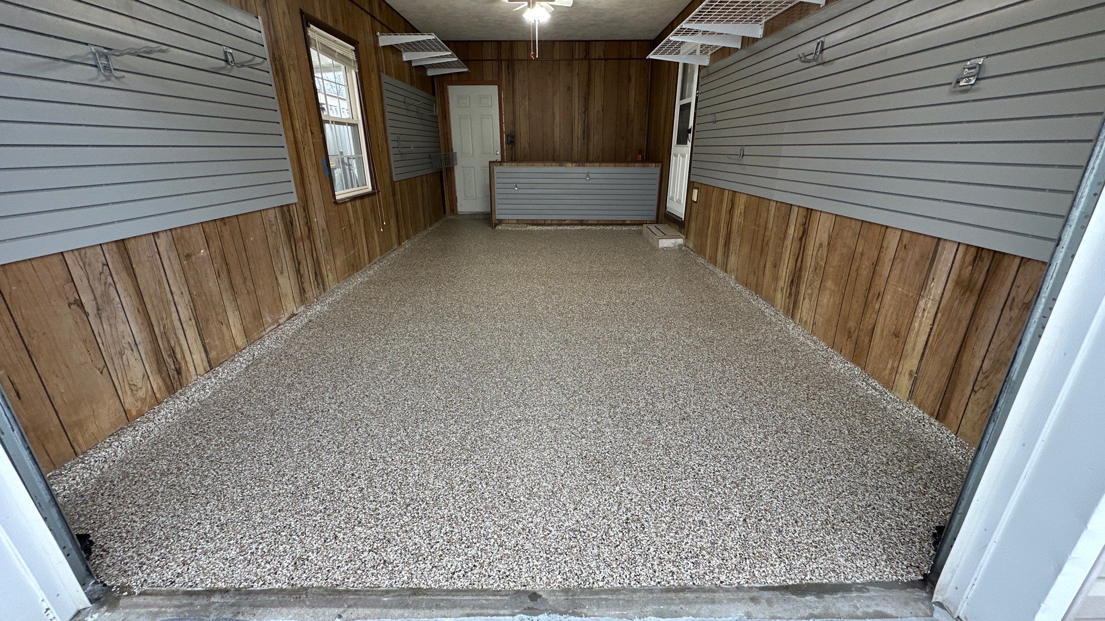 Banner Garage Floor, Heavy Duty Slotwall, SW HD Slatwall: "Weathered Grey", BG Floor: "Riverbed", Garage Remodel, Garage Upgrade