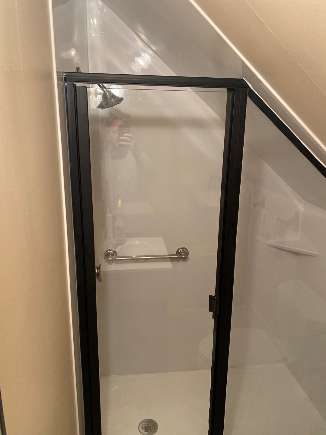 Custom glass can sometimes hit delays but the results are always impressive. If you are looking to upgrade your slanted roof shower or bath, give us a call!