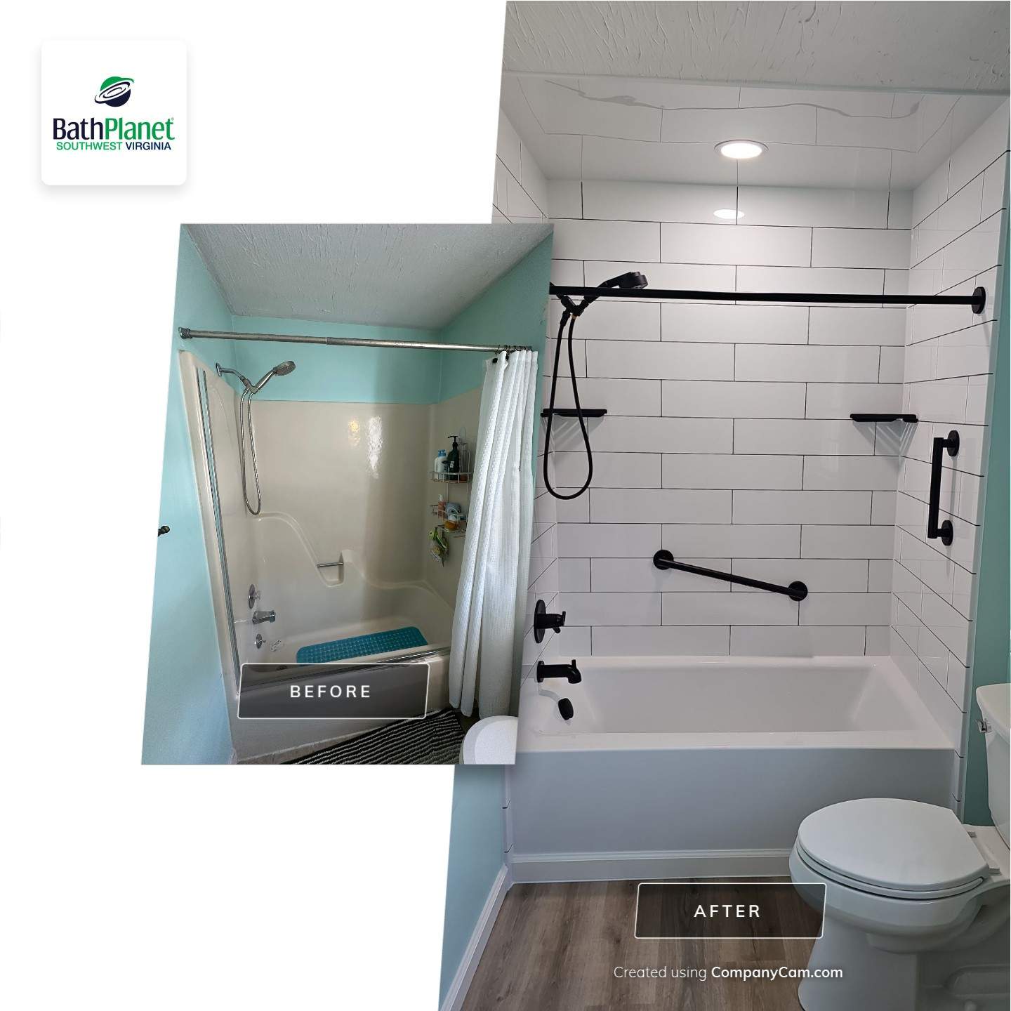 The existing paint color leaned toward beach vibes so the Homeowner embraced it with this light wood flooring and coordinating vanity.
