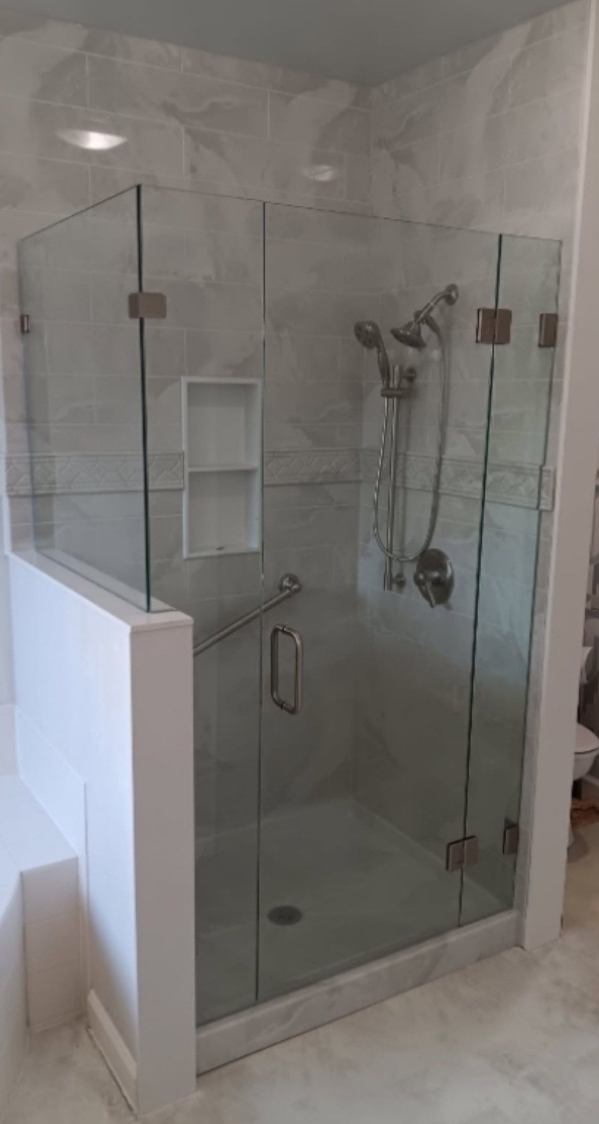 Silver White Marble, Fairfield, Brushed Nickel, Shower Upgrade