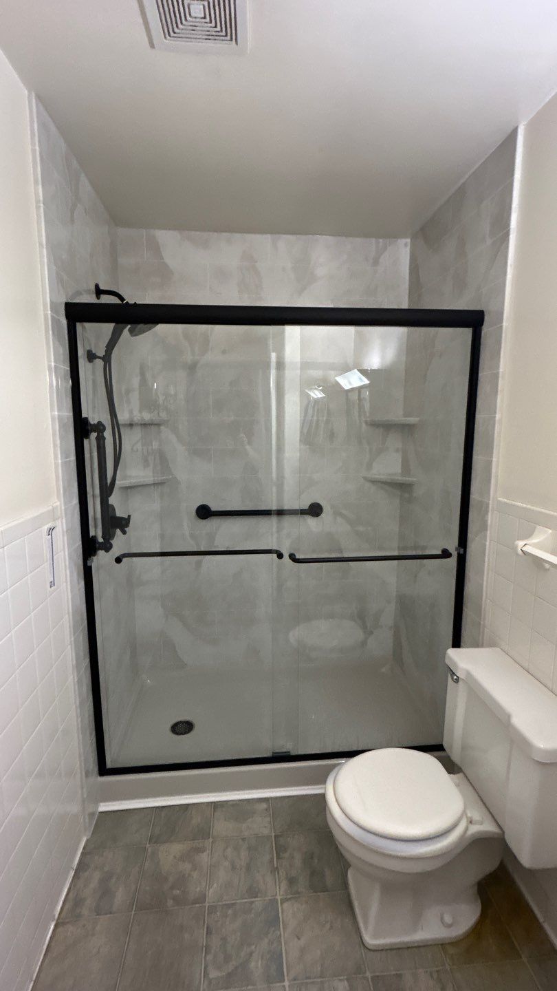 Silver White Marble, Fairfield, Gray, Matte Black, Tub to Shower