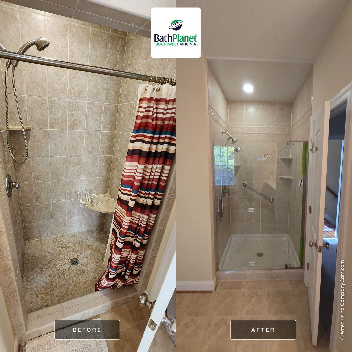 This Client loved the look of their existing shower, but were in need of a refresh due to age and poor ventilation. We removed the existing tile and header and rebuilt their shower to last a lifetime using BathPlanet-exclusive materials backed by our Housekeeping Seal of Approval.