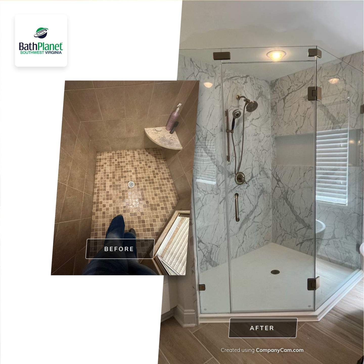 Calcutta Marble, Soaker Tub, Champagne Gold, Bathroom Remodel, Flooring Installation, Vanity Install