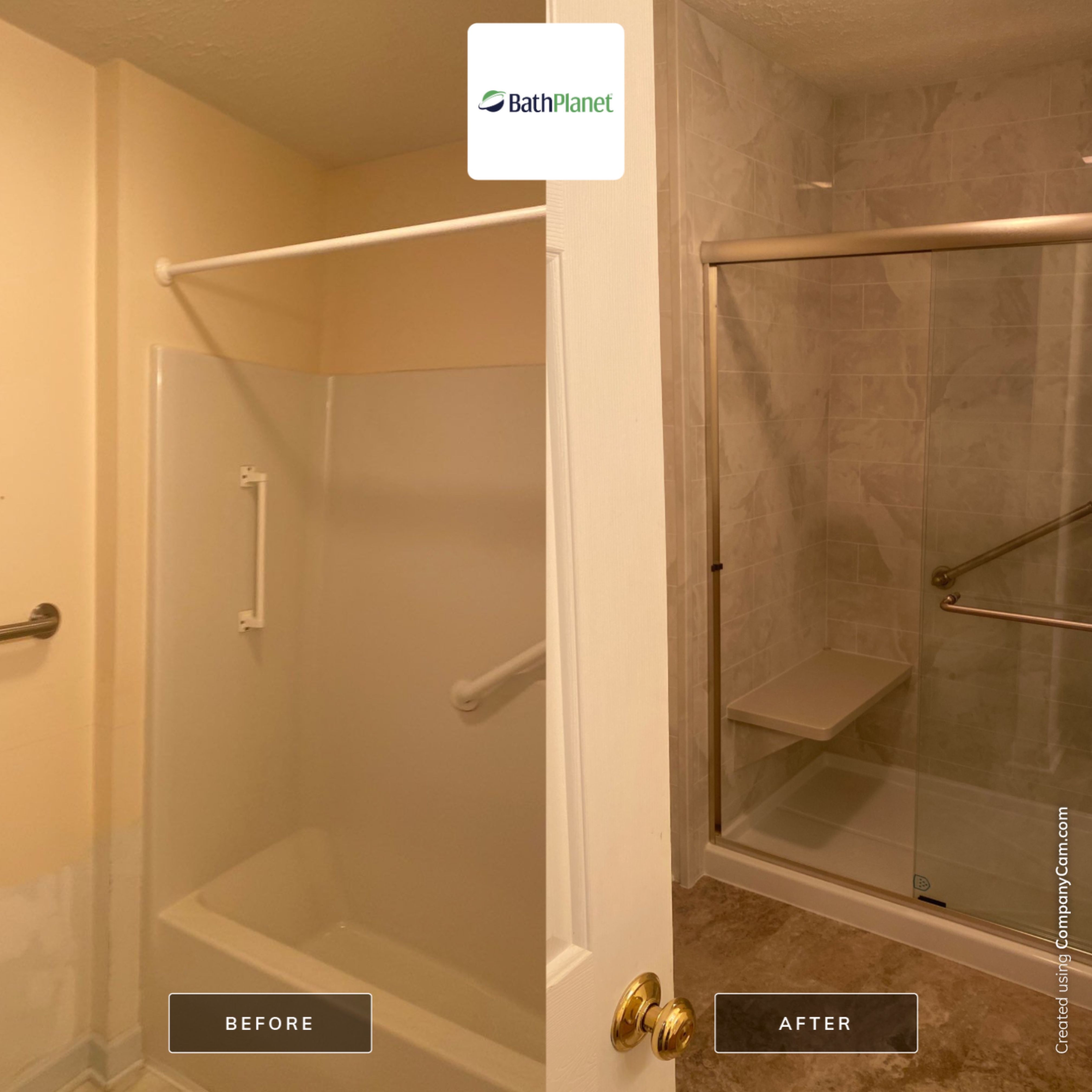 Silver White Marble, Brushed Nickel, Bench Seat, Grab Bar, Flooring, Tub to Shower
