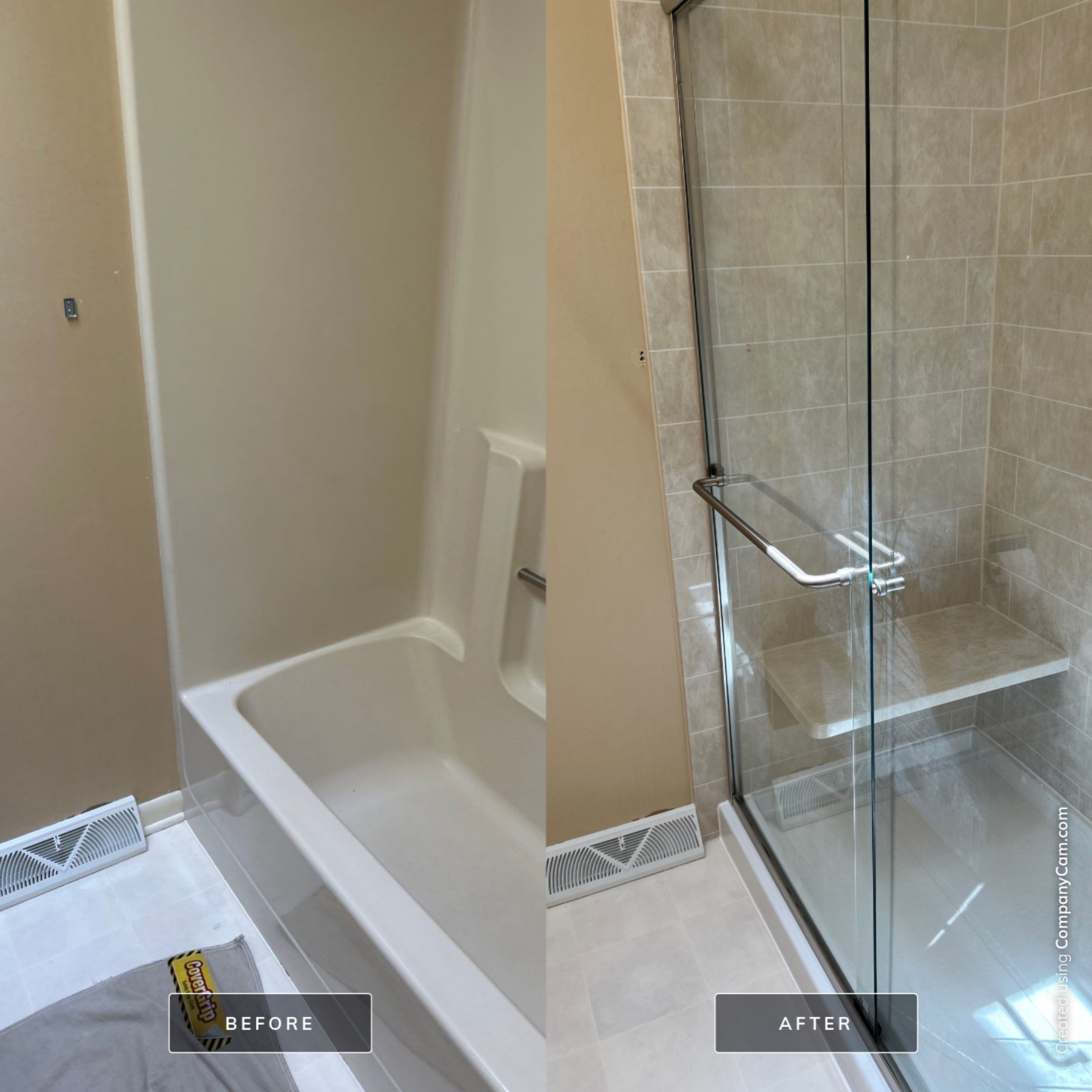 Travertine, Fairfield, White, Brushed Nickel, Tub to Shower