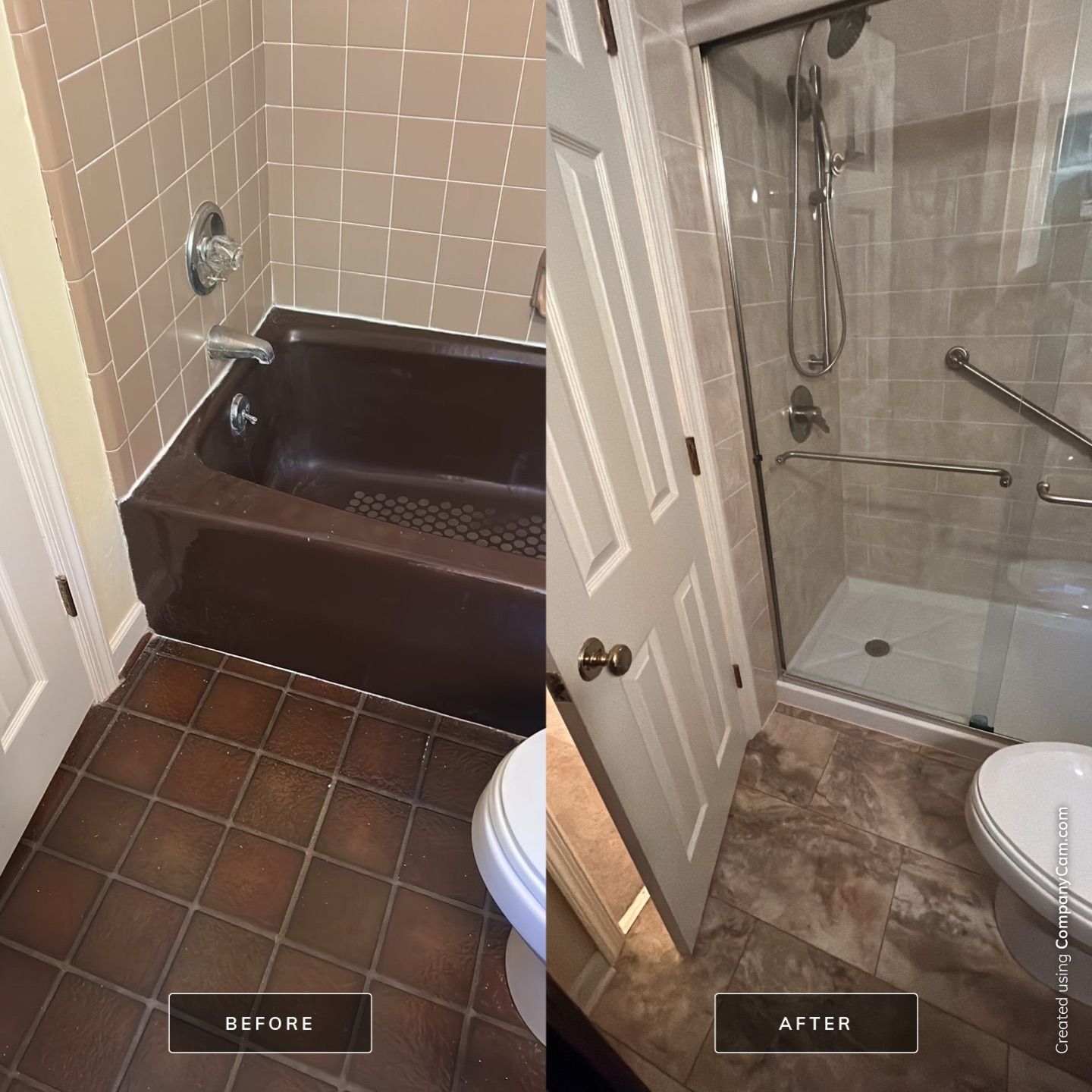 The existing tub leaked, causing damage to the downstairs ceiling underneath. We repaired the water damage and fixed the ceiling. Now, just paint and it's good as new! :-)