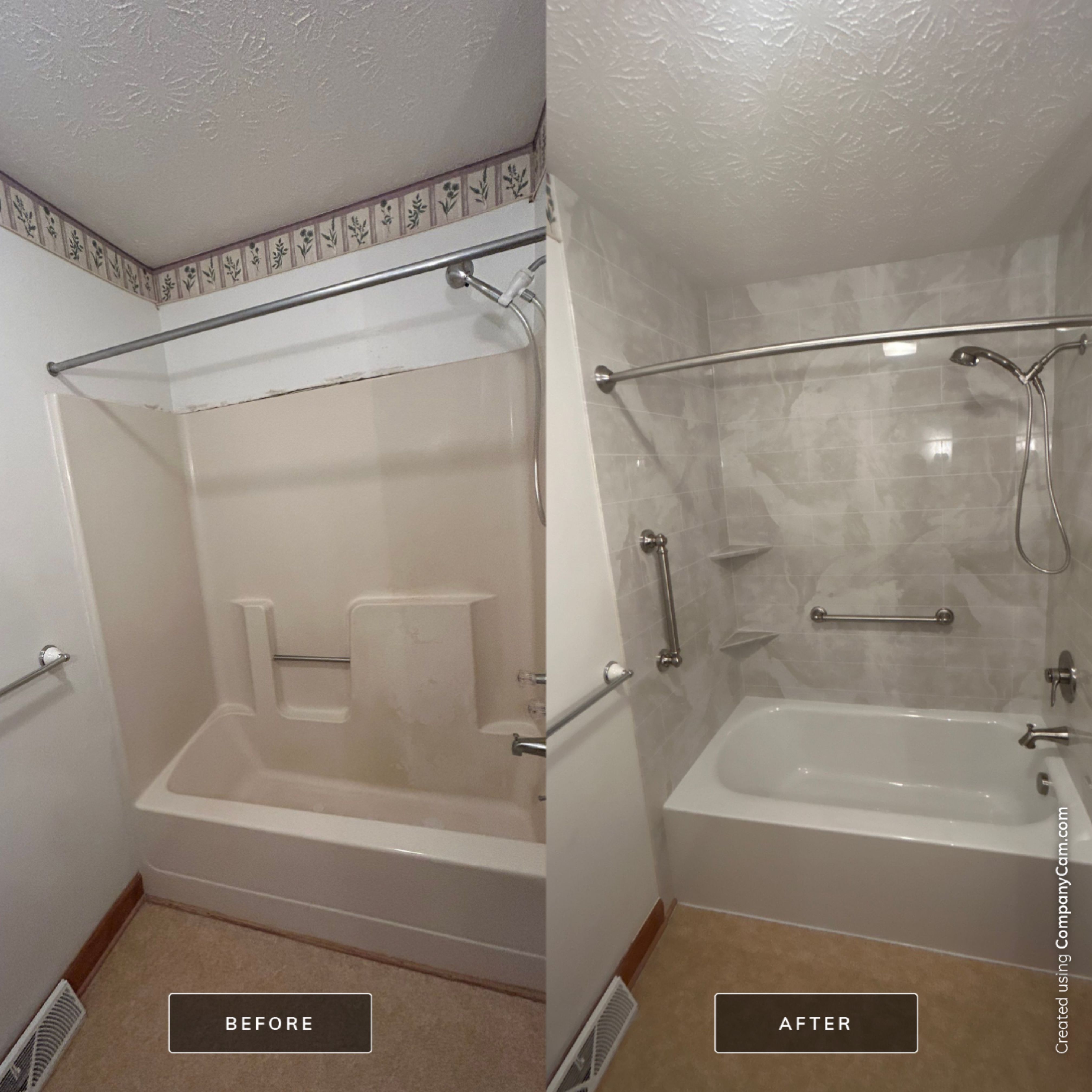 Silver White Marble, Brushed Nickel, Tub Upgrade, Vanity Install