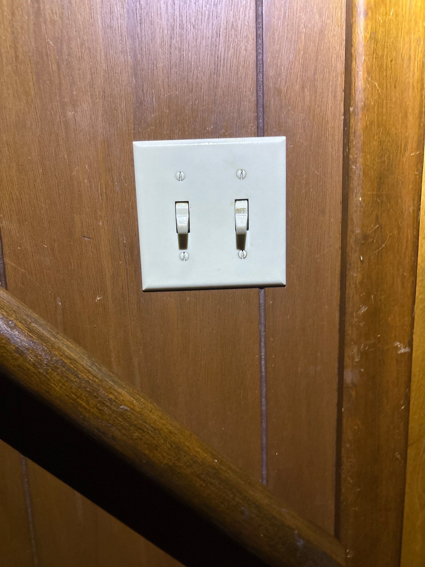 Rewired 3-way switches for a staircase light in southwest Lincoln. These switches were wired incorrectly since the house was built