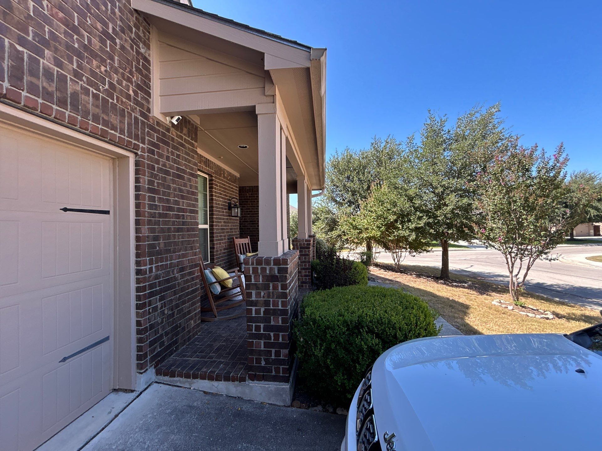 Completed roof and gutter repair in San Antonio, TX (78254) using Owens Corning Supreme® Driftwood shingles. The crew removed damaged roofing down to the deck, ensured a solid surface, and replaced any damaged decking as needed. New ice and water barrier was installed in valleys, along with 3-in-1 pipe flashings sealed for added protection. Shingles were installed to blend seamlessly with the existing roof, and all exposed nails were properly sealed. On the front of the house, the existing downspout was removed, the hole was closed, the gutter was resloped, and a new downspout was installed on the opposite end. Work was completed to manufacturer specifications, improving durability, weather resistance, and curb appeal. Final inspection confirmed quality workmanship and a clean job site.