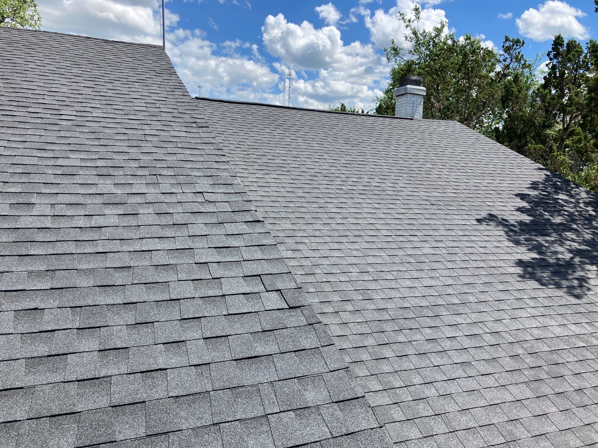 San Antonio roofing project featuring GAF Natural Shadow Charcoal shingles, combining weather resistance, energy efficiency, and a sleek charcoal finish.