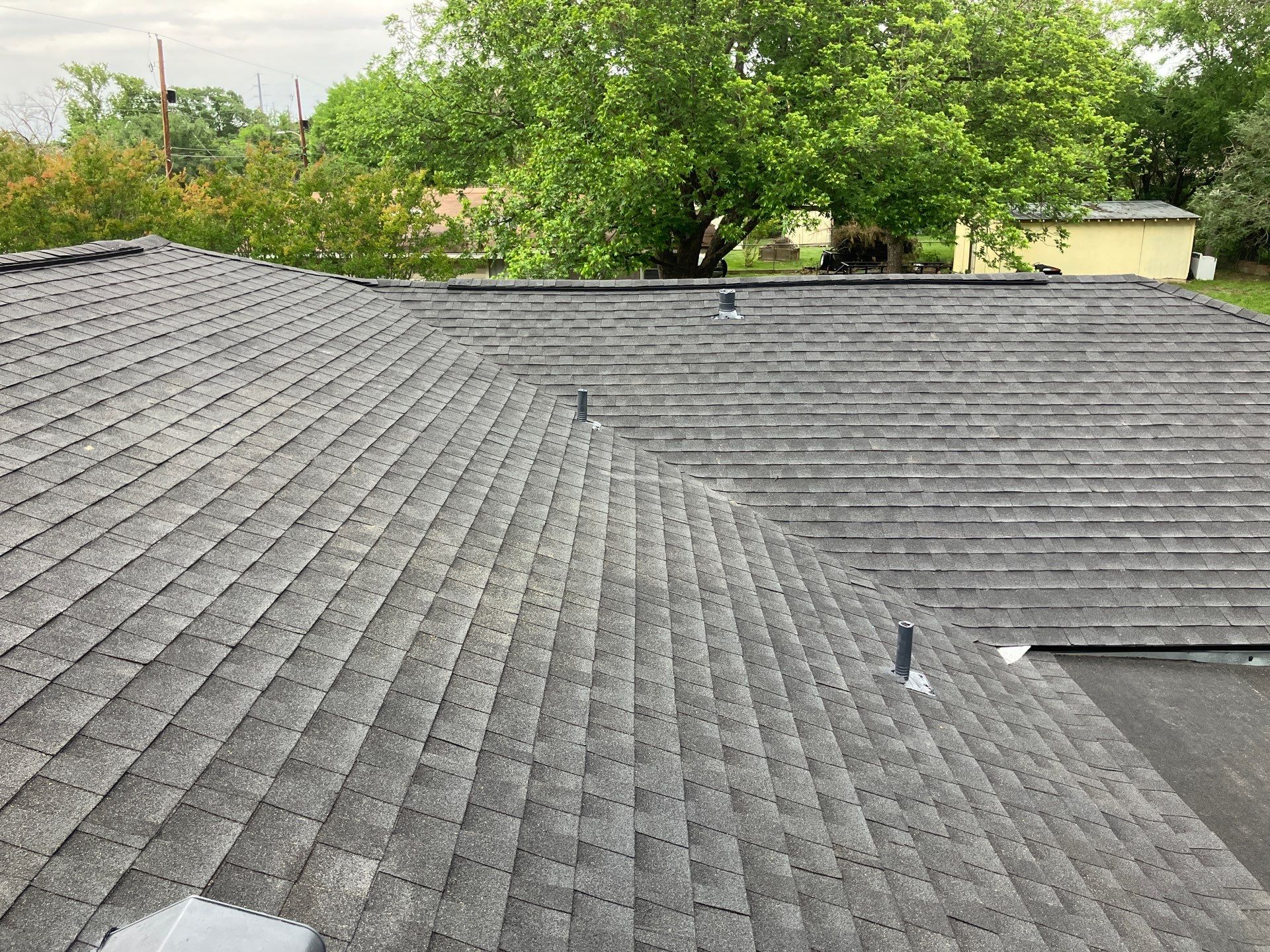 Complete roof replacement completed by BH Roofing in San Antonio, TX using GAF Natural Shadow shingles in Charcoal. This durable asphalt shingle system provides long-lasting protection and enhanced curb appeal. Our licensed San Antonio roofing contractors ensured proper installation and ventilation. Ideal for Texas weather, this roof is built to handle heat, wind, and storms. Trusted local roofing service from start to finish.